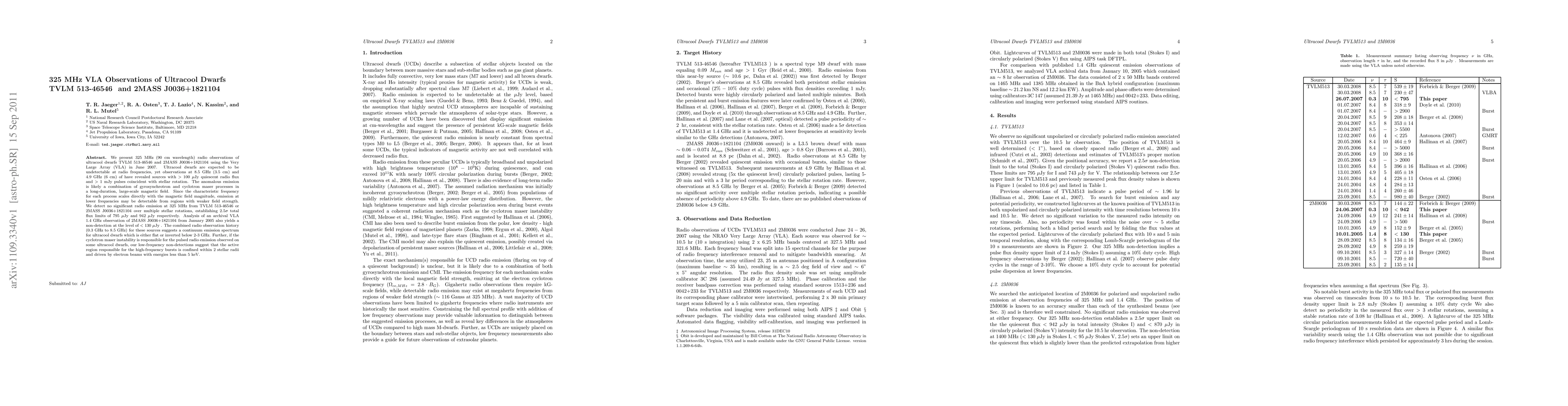 This study reports 325 MHz radio observations of ultracool dwarfs TVLM 513-46546 and 2MASS J0036+1821104 using the VLA, finding no significant emission, which supports a flat or inverted radio spectrum for these objects below 2-3 GHz. The non-detections suggest the active region for high-frequency bursts is confined within 2 stellar radii.