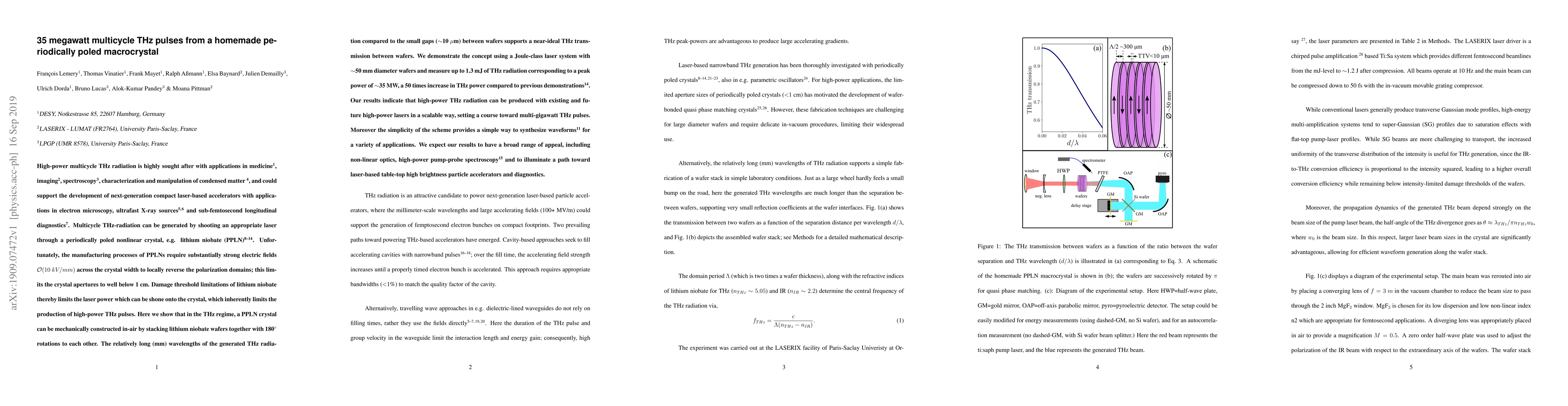 This paper demonstrates the generation of high-power, multicycle THz radiation using a stacked lithium niobate macrocrystal, achieving 35 MW peak power. The method involves mechanically assembling wafers with 180° rotations, enabling scalable production of THz pulses and overcoming limitations of traditional periodically poled crystals.