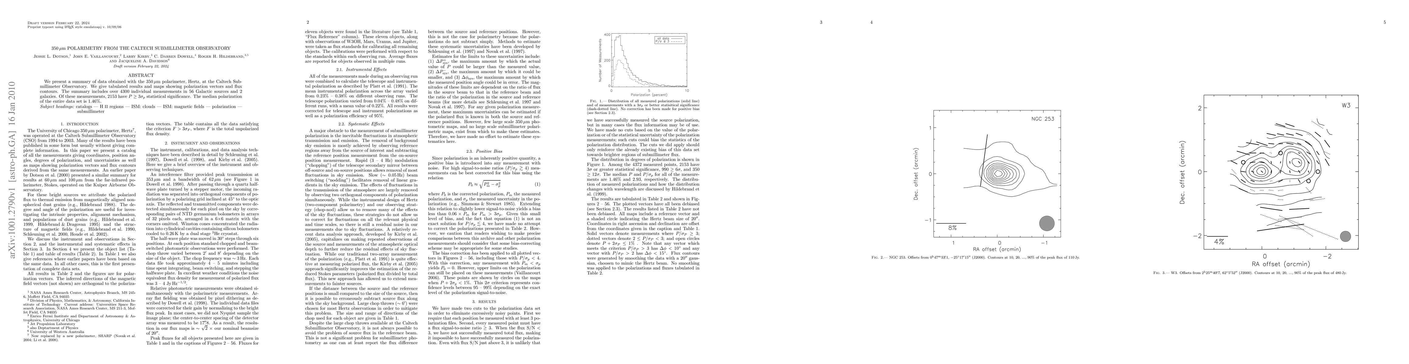 This paper summarizes data from the 350 micron polarimeter Hertz at the Caltech Submillimeter Observatory, presenting over 4300 measurements in 56 Galactic sources and 2 galaxies, with 2153 measurements showing significant polarization. The median polarization across the dataset is 1.46%.