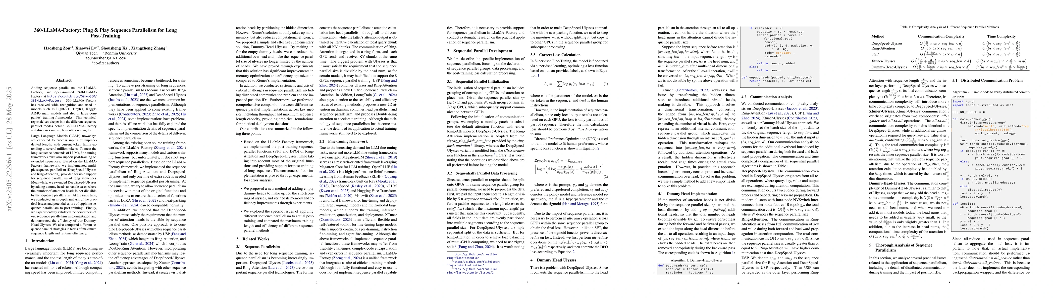 The research introduces sequence parallelism into LLaMA-Factory, resulting in the open-sourcing of 360-LLaMA-Factory, which is detailed in a technical report.