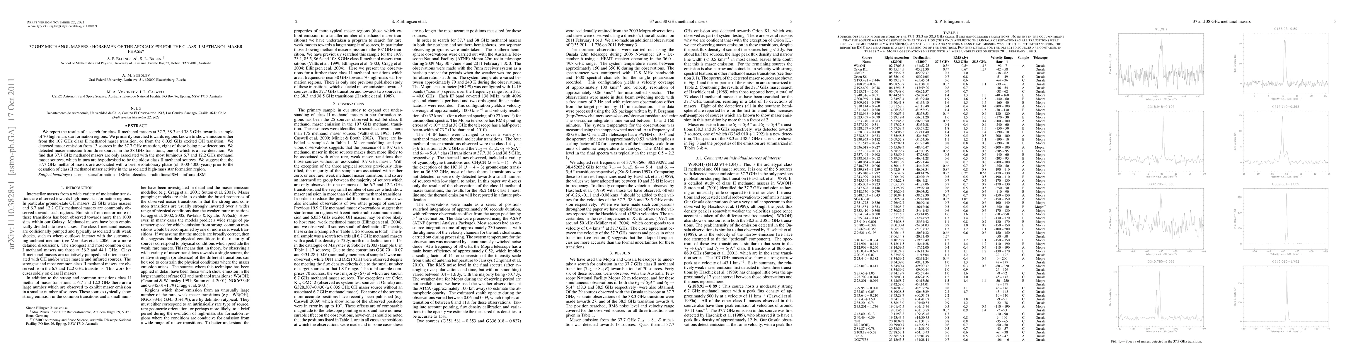 This study detected 37 GHz methanol masers in high-mass star formation regions, finding 13 sources in the 37.7 GHz transition, including eight new detections. The 37.7 GHz masers are linked to the most luminous and oldest class II methanol sources, suggesting they mark a brief evolutionary phase before the cessation of class II methanol maser activity.