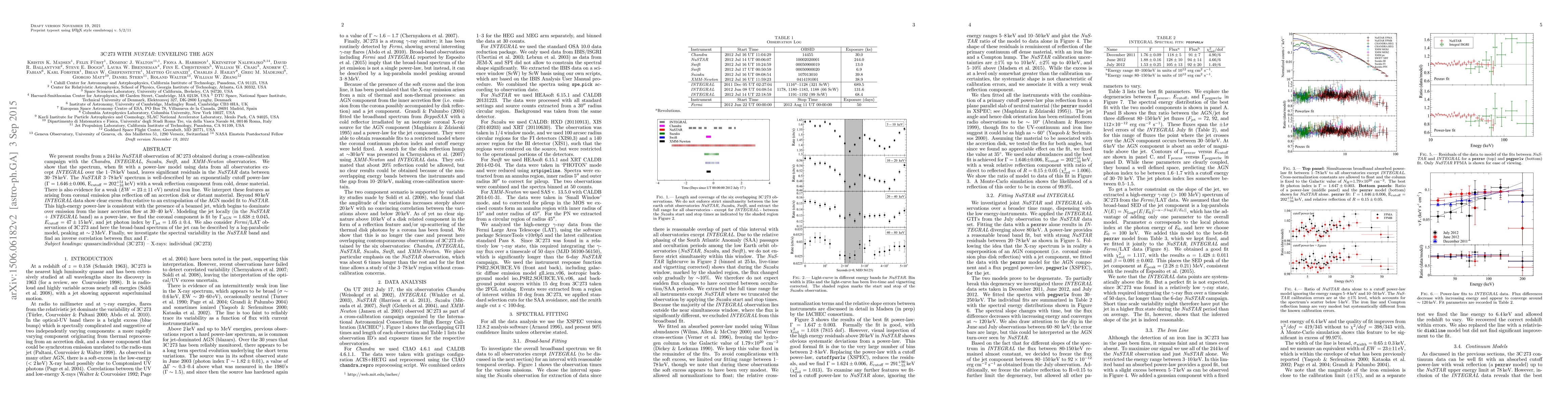 Researchers used NuSTAR to study the active galactic nucleus 3C 273, finding a power-law spectrum with an exponentially cutoff component and evidence for a neutral iron line, suggesting coronal emission and reflection off an accretion disk or distant material.