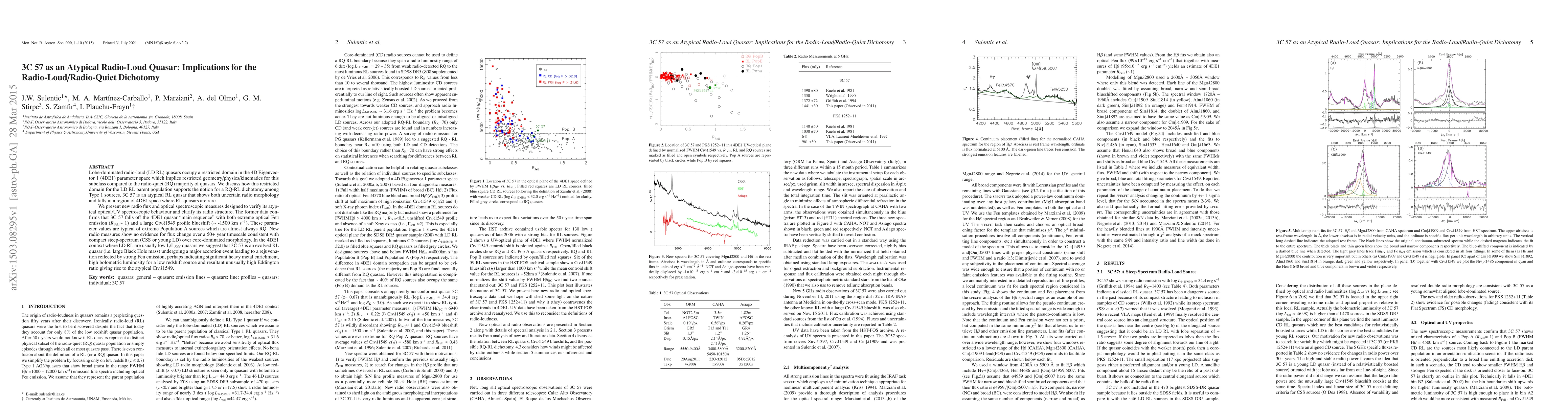 3C 57 is an atypical radio-loud quasar that deviates from the typical 4DE1 parameter space, exhibiting extreme optical FeII emission and a large CIV blueshift. New radio and optical data suggest it may be an evolved quasar undergoing a major accretion event, challenging the radio-loud/radio-quiet dichotomy.