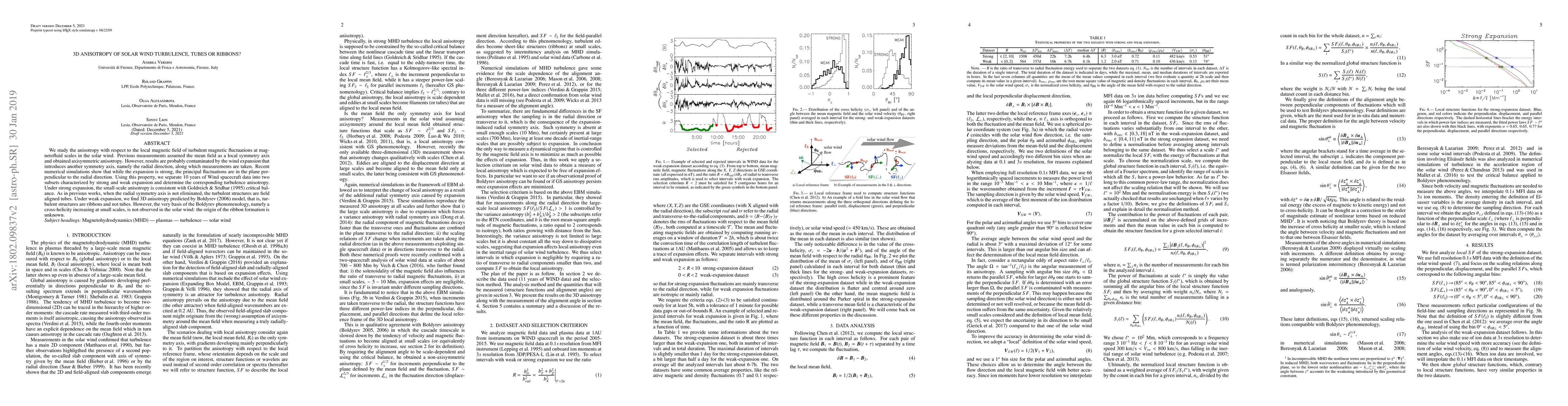 This study investigates the anisotropy of solar wind turbulence relative to the local magnetic field, finding that under strong expansion, turbulence forms field-aligned tubes, while under weak expansion, it exhibits 3D anisotropy as ribbons, contrary to the Boldyrev model's predictions. The origin of ribbon formation remains unclear.