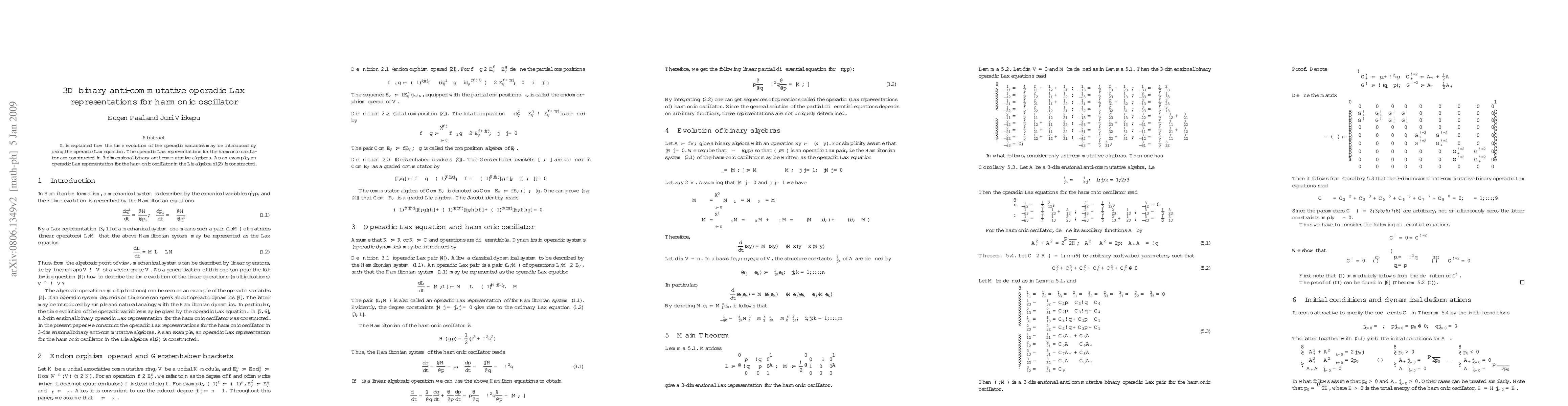 It is explained how the time evolution of the operadic variables may be introduced by using the operadic Lax equation. The operadic Lax representations for the harmonic oscillator are constructed in 3-dimensional binary anti-commutative algebras. As an example, an operadic Lax representation for the harmonic oscillator in the Lie algebra sl(2) is constructed.