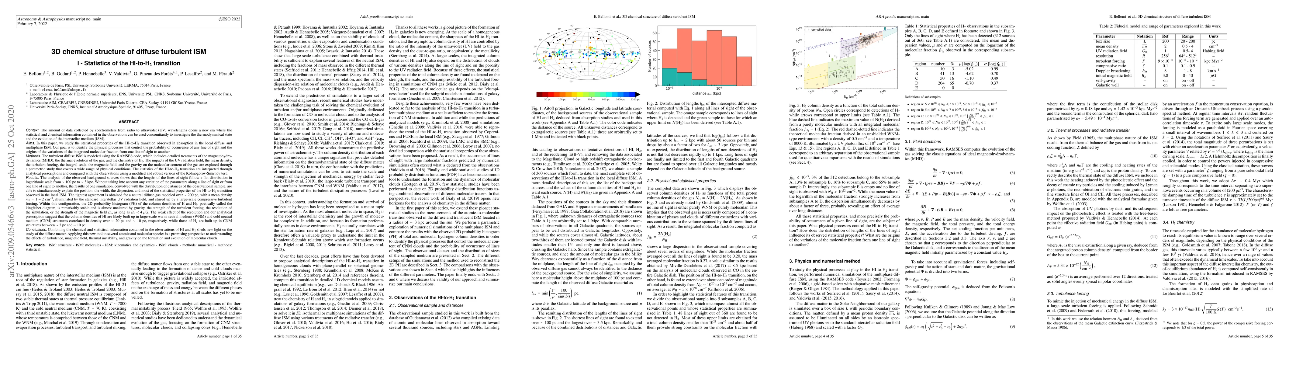 This paper investigates the statistical properties of the HI-to-H$_2$ transition in the diffuse interstellar medium (ISM) using simulations and observations. The study finds that the transition's statistical properties are best explained by a neutral diffuse gas model with large-scale compressive turbulence, mean density of $1-2$ cm$^{-3}$, and standard interstellar UV radiation.