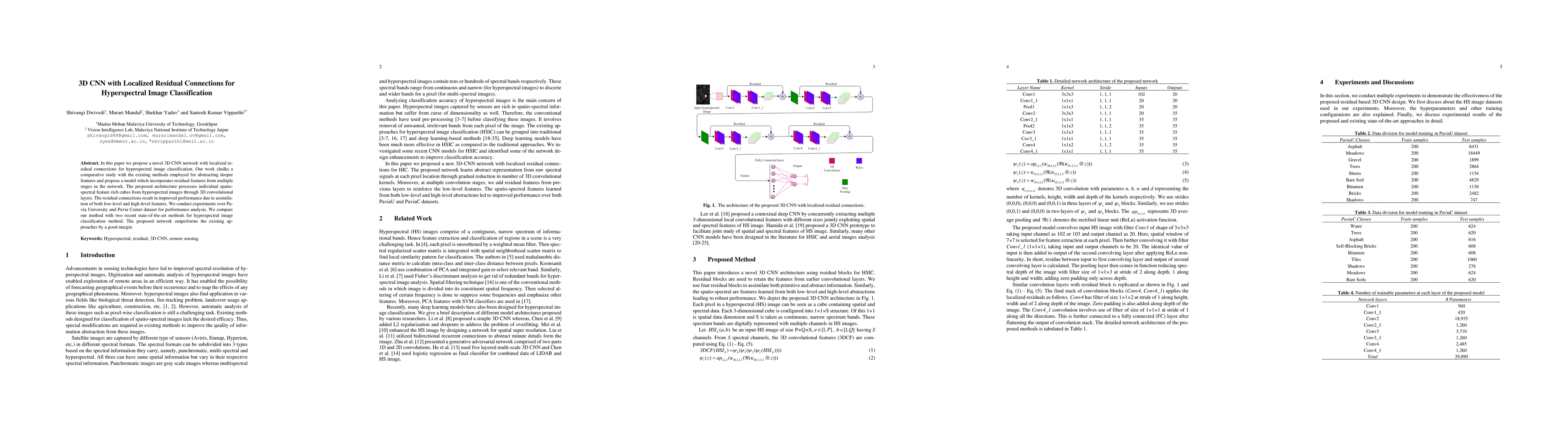 This paper introduces a novel 3D CNN architecture with localized residual connections for hyperspectral image classification, demonstrating improved performance through the integration of both low-level and high-level features. The proposed network significantly outperforms existing methods, as evidenced by experiments on the Pavia University and Pavia Center datasets.