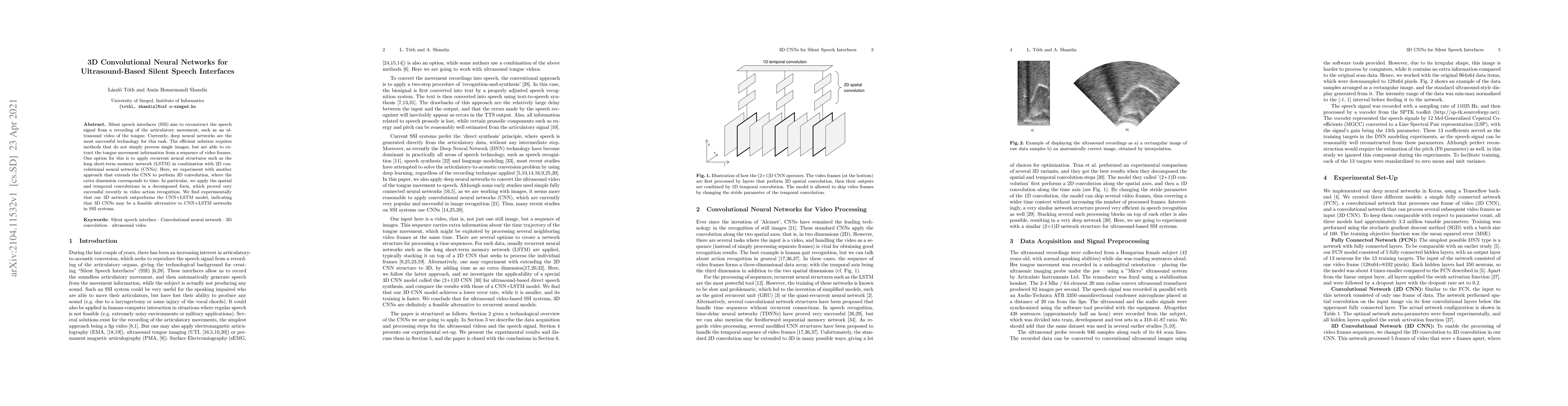 This paper explores the use of 3D convolutional neural networks (CNNs) for reconstructing silent speech from ultrasound videos, demonstrating that they outperform traditional CNN+LSTM models by extracting temporal and spatial information from video sequences. The results suggest 3D CNNs could be a viable alternative for silent speech interfaces.