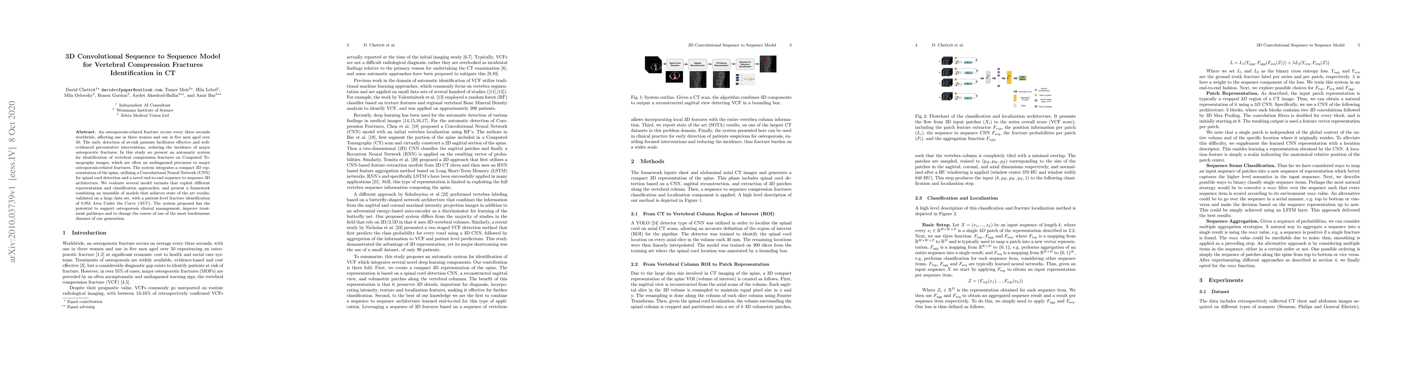This study introduces a 3D convolutional sequence-to-sequence model for identifying vertebral compression fractures in CT scans, aiming to improve early detection of osteoporosis-related fractures. The system combines an ensemble of models achieving a high AUC of 0.955, potentially enhancing clinical management and treatment pathways for osteoporosis.