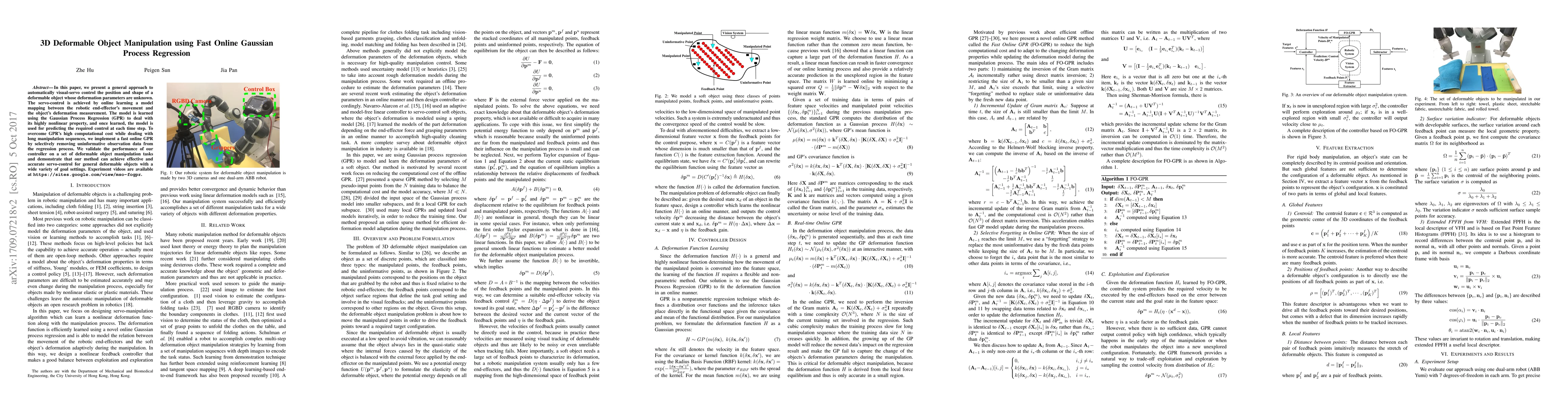 This paper proposes an online learning method using Fast Online Gaussian Process Regression to control the position and shape of deformable objects. It selectively removes uninformative data to manage computational costs, demonstrating effective and accurate servo-control across various manipulation tasks.