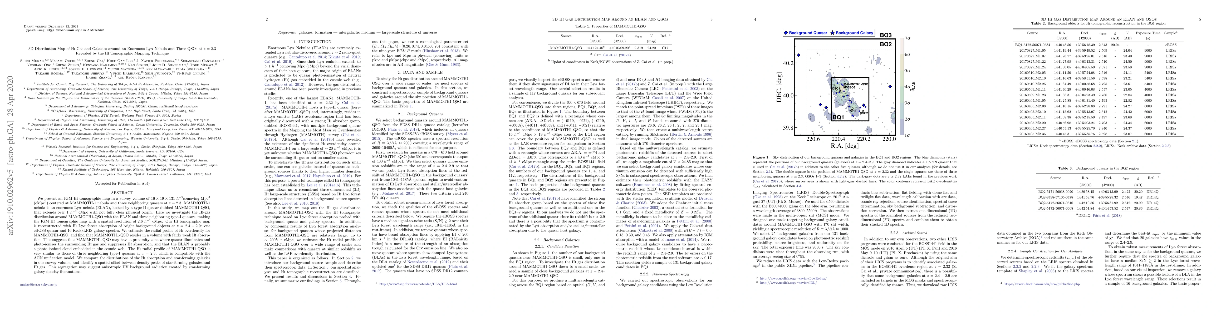This paper presents a 3D HI tomography map centered on the MAMMOTH-1 nebula and three quasars at $z=2.3$, revealing a weak HI absorption region around MAMMOTH1-QSO, suggesting a photo-ionized cloud. The study finds a spatial offset between HI gas and star-forming galaxies, hinting at anisotropic UV background radiation.