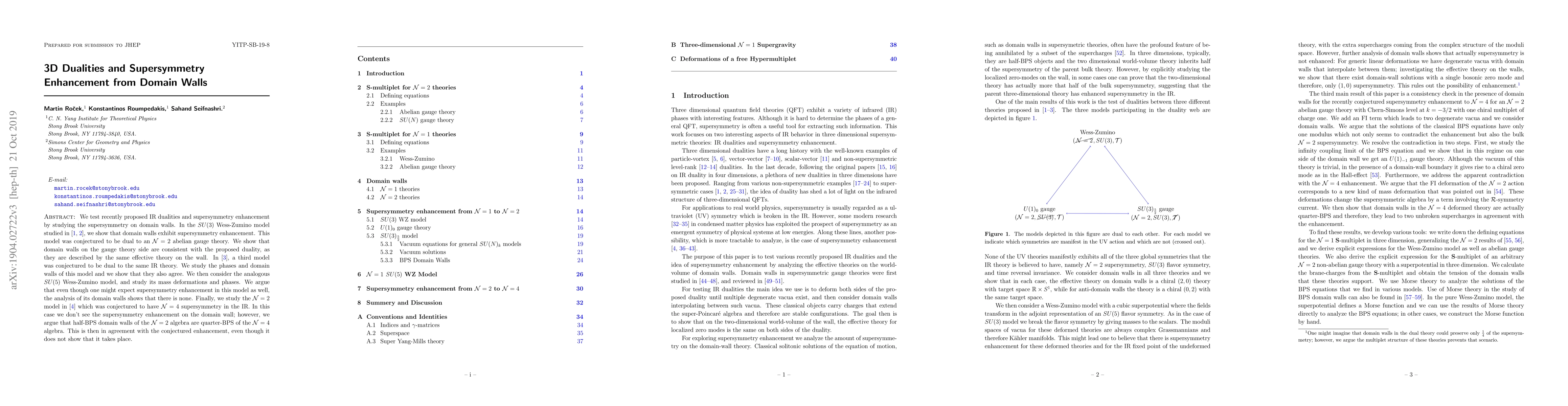 We test recently proposed IR dualities and supersymmetry enhancement by studying the supersymmetry on domain walls. In the $SU(3)$ Wess-Zumino model studied in arXiv:1804.02018 and arXiv:1804.05707, we show that domain walls exhibit supersymmetry enhancement. This model was conjectured to be dual to an $\mathcal{N}=2$ abelian gauge theory. We show that domain walls on the gauge theory side are consistent with the proposed duality, as they are described by the same effective theory on the wall. In arXiv:1808.04173, a third model was conjectured to be dual to the same IR theory. We study the phases and domain walls of this model and we show that they also agree. We then consider the analogous $SU(5)$ Wess-Zumino model, and study its mass deformations and phases. We argue that even though one might expect supersymmetry enhancement in this model as well, the analysis of its domain walls shows that there is none. Finally, we study the $\mathcal{N}=2$ model in arXiv:1806.07714 which was conjectured to have $\mathcal{N}=4$ supersymmetry in the IR. In this case we don't see the supersymmetry enhancement on the domain wall; however, we argue that half-BPS domain walls of the $\mathcal{N}=2$ algebra are quarter-BPS of the $\mathcal{N}=4$ algebra. This is then in agreement with the conjectured enhancement, even though it does not show that it takes place.