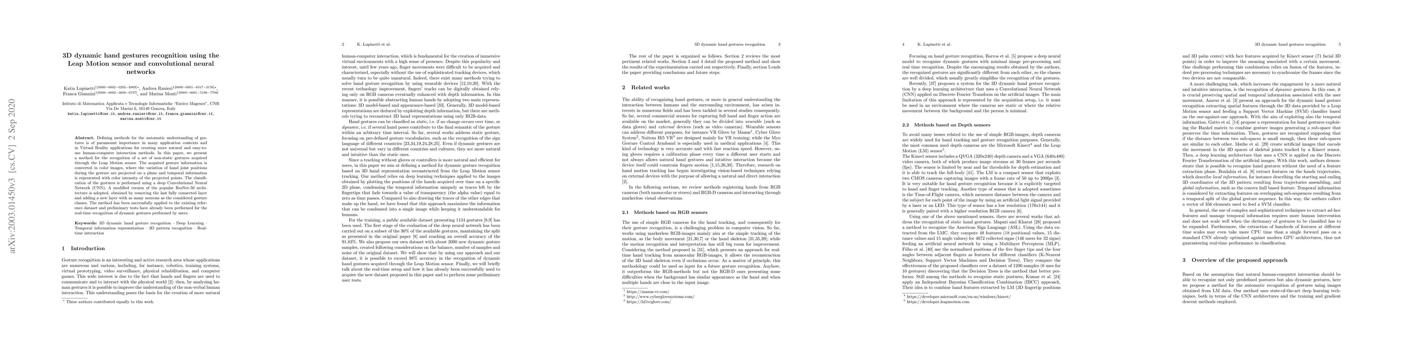 This paper proposes a method for recognizing 3D dynamic hand gestures using a Leap Motion sensor and a modified Convolutional Neural Network (CNN) based on ResNet-50 for classification. The gestures are converted into color images representing hand joint positions and temporal information, and the CNN successfully classifies the gestures in real-time tests.