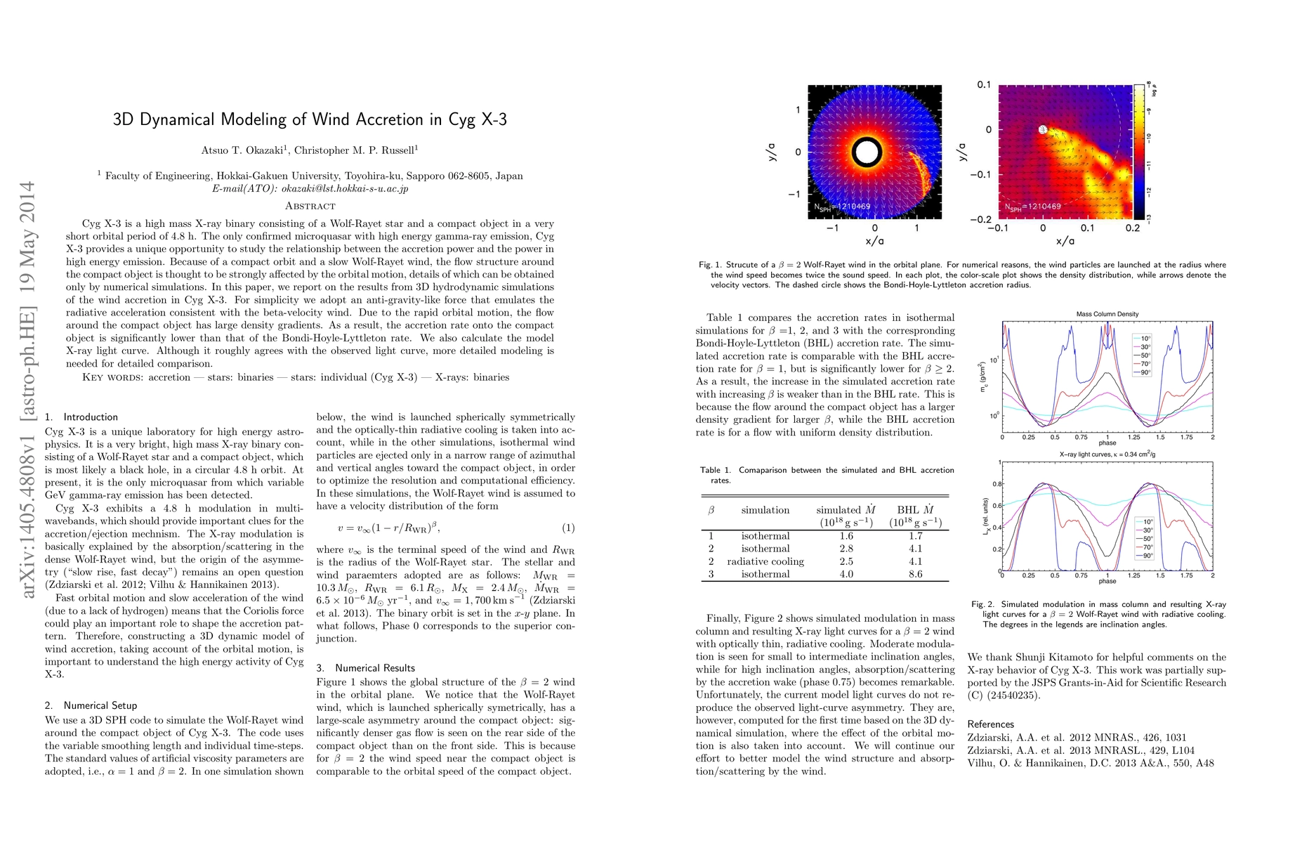 This paper presents 3D hydrodynamic simulations of wind accretion in Cyg X-3, a high mass X-ray binary, revealing that rapid orbital motion leads to lower accretion rates than expected. The study also calculates a model X-ray light curve that roughly matches observations, though more detailed modeling is required for precise comparison.