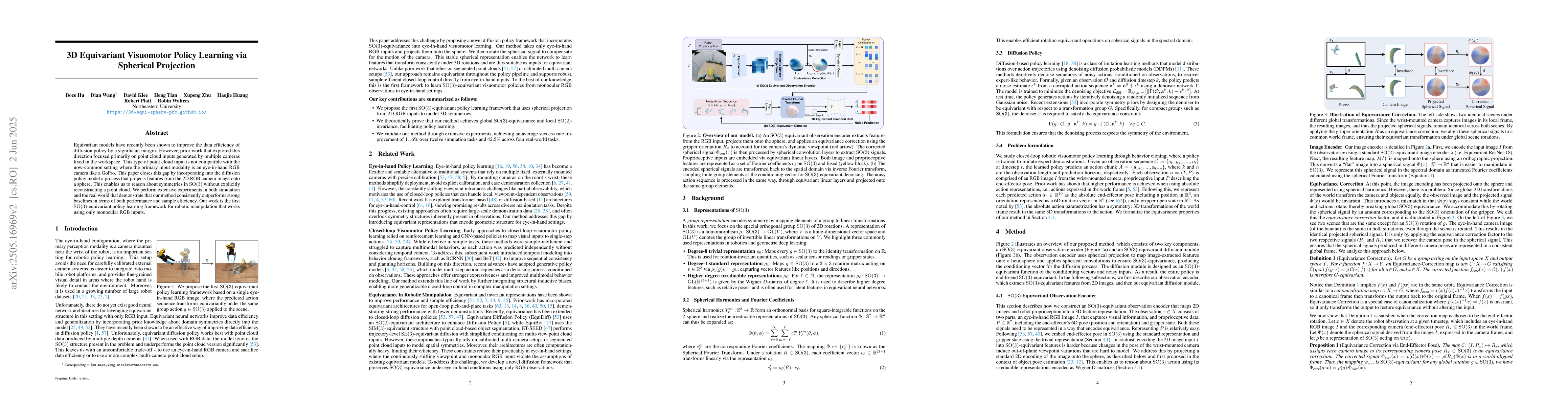 The research introduces a method to incorporate features from 2D RGB camera images onto a sphere, enabling SO(3) symmetry reasoning without reconstructing a point cloud, all within a diffusion policy model.