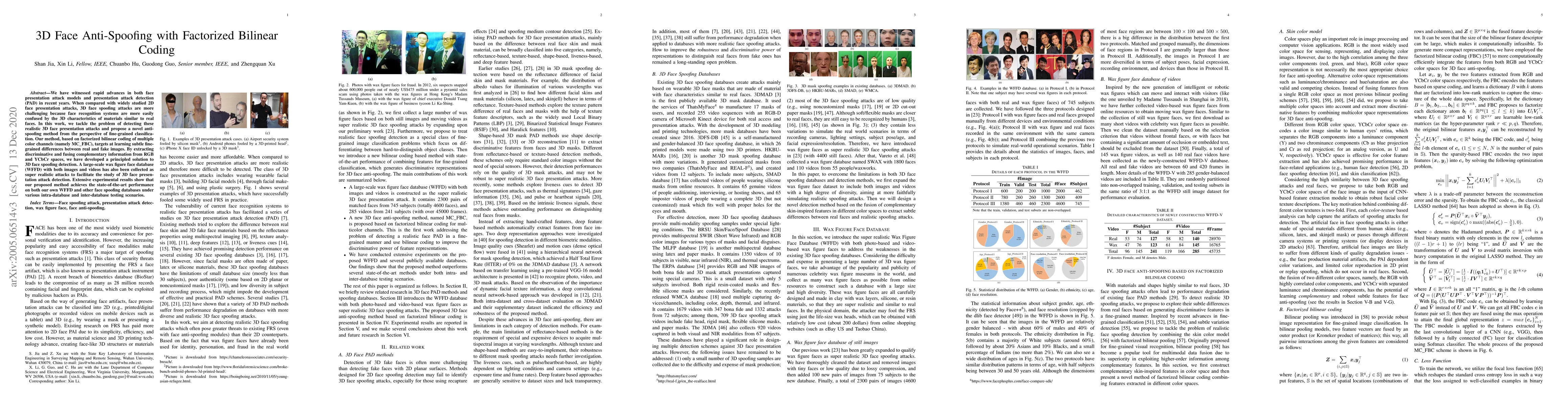This paper proposes a novel anti-spoofing method called MC_FBC for detecting realistic 3D face presentation attacks by leveraging factorized bilinear coding across multiple color channels. The method achieves state-of-the-art performance by extracting discriminative features from RGB and YCbCr spaces, and a new wax figure face database (WFFD) is introduced for testing.