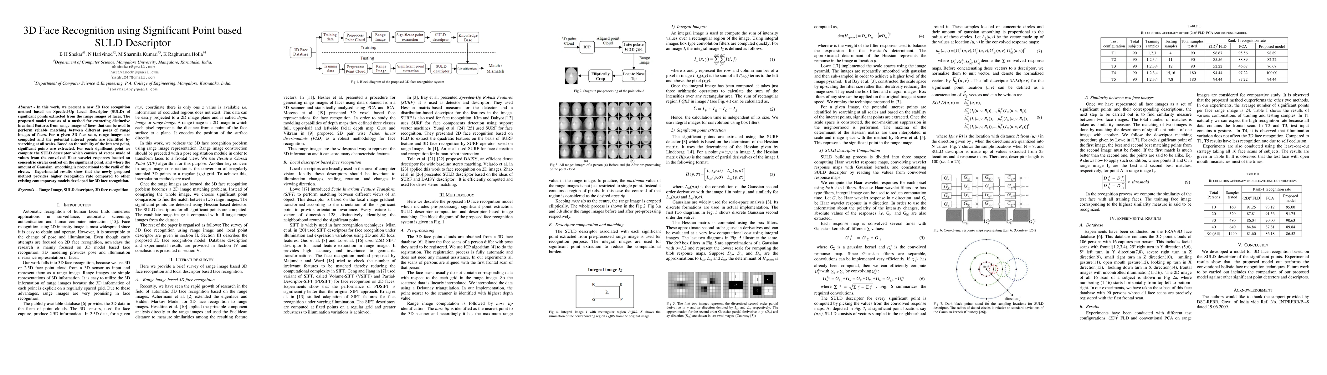 This paper introduces a novel 3D face recognition method using significant point based SULD descriptors extracted from range images. The method identifies and computes SULD descriptors from stable interest points, achieving higher recognition rates than contemporary models.