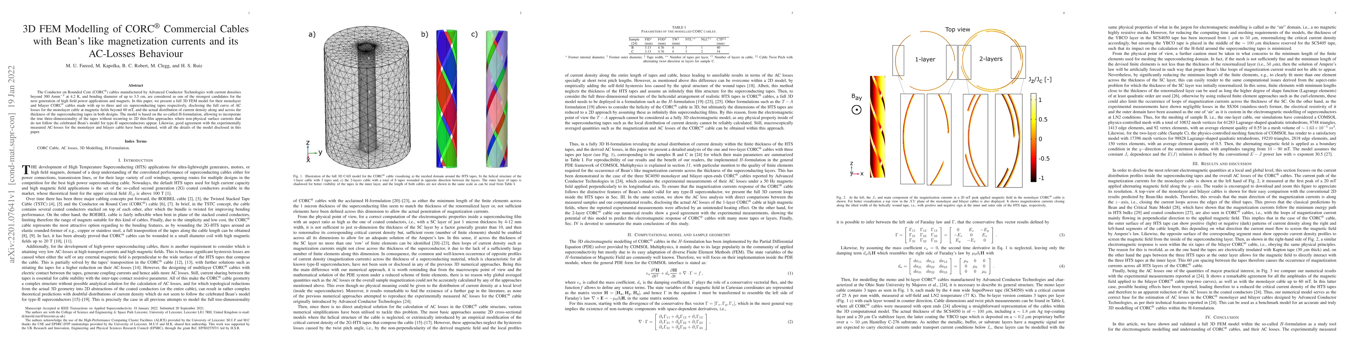 Researchers developed a 3D FEM model for CORC cables to study AC losses and current density distribution under high magnetic fields, achieving good agreement with experimental results.