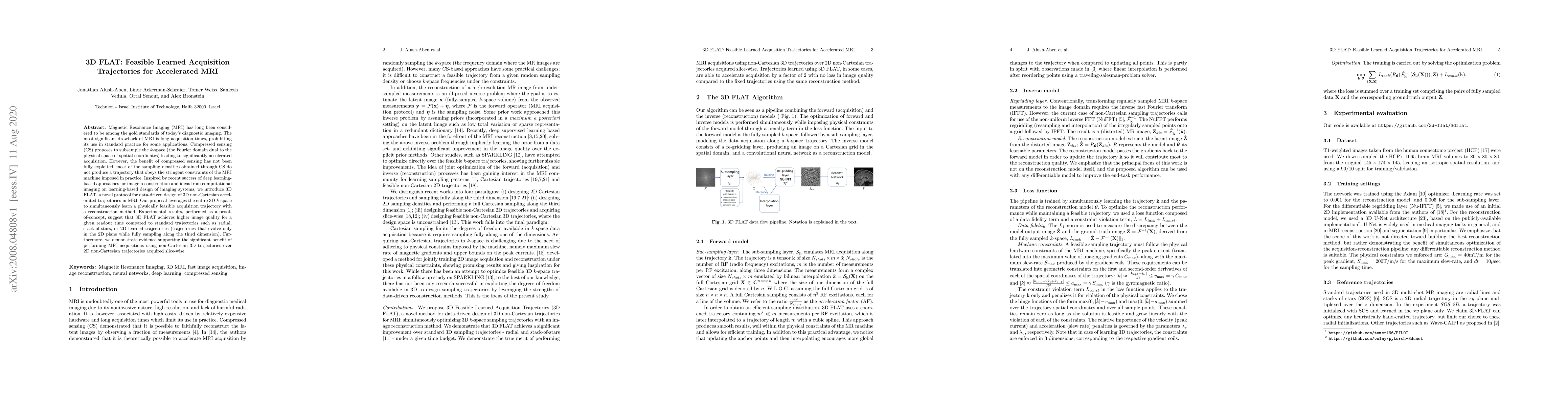 The paper introduces 3D FLAT, a novel deep learning-based approach for designing physically feasible 3D non-Cartesian accelerated acquisition trajectories in MRI, achieving higher image quality compared to standard methods. The method leverages the entire 3D k-space to optimize both trajectory and reconstruction, demonstrating benefits over 2D non-Cartesian trajectories.
