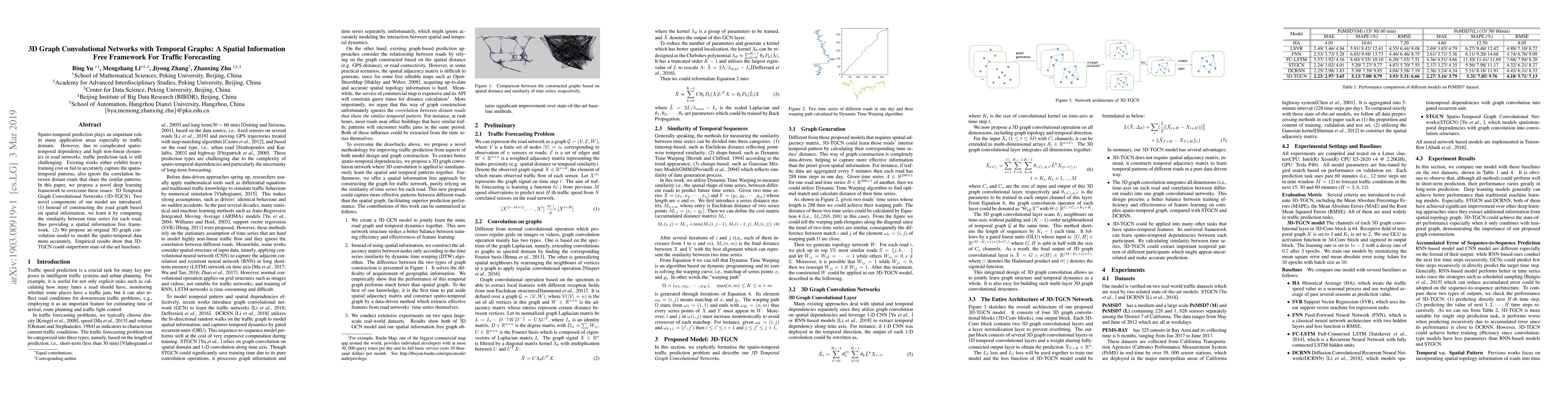 This paper proposes a 3D Temporal Graph Convolutional Network (3D-TGCN) framework to improve traffic forecasting accuracy, learning road graphs based on time series similarity rather than spatial information and outperforming state-of-the-art baselines.