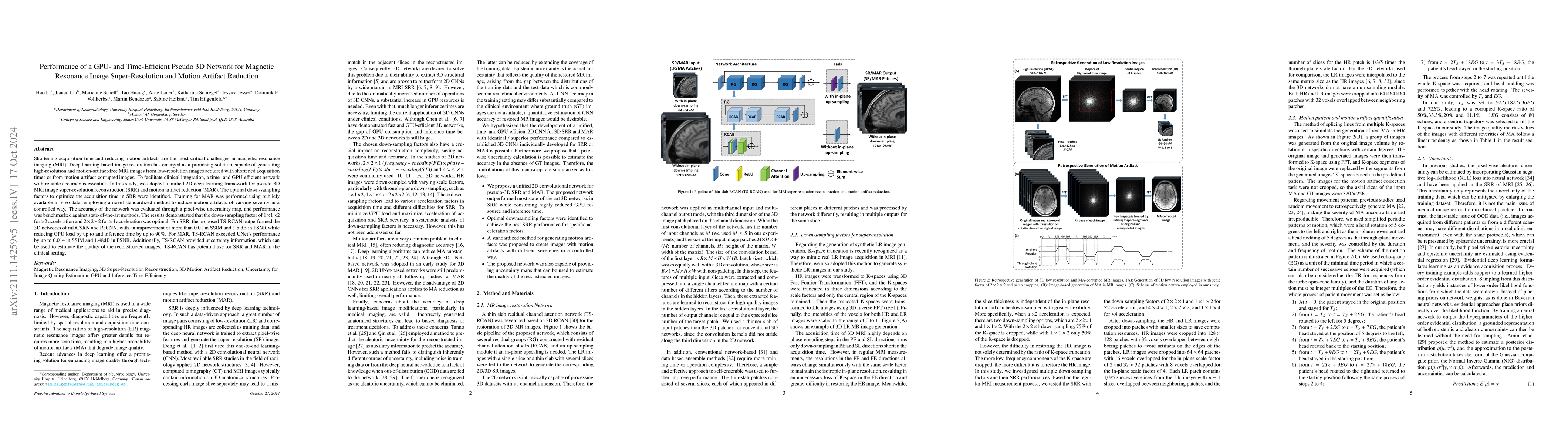 Shortening acquisition time and reducing the motion artifacts are two of the most essential concerns in magnetic resonance imaging. As a promising solution, deep learning-based high-quality MR image restoration has been investigated to generate highly-resolved and motion artifact-free MR images from lower resolution images acquired with shortened acquisition time or motion artifact-corrupted images. However, numerous problems still exist to prevent deep learning approaches from becoming practical in the clinic environment. Specifically, most of the prior works focus solely on the network but ignore the impact of various down-sampling strategies on the acquisition time. Besides, the long inference time and high GPU consumption are also the bottlenecks to deploy most of the prior works in clinics. Furthermore, prior studies employ random movement in retrospective motion artifact generation, resulting in uncontrollable severity of motion artifact. More importantly, doctors are unsure whether the generated MR images are trustworthy, making diagnosis difficult. To overcome all these problems, we adopted a unified framework of 2D deep learning neural network for both 3D MRI super-resolution and motion artifact reduction, demonstrating such a framework can achieve better performance in 3D MRI restoration tasks compared to other state-of-the-art methods and remain the GPU consumption and inference time significantly low, thus easier to deploy. We also analyzed several down-sampling strategies based on the acceleration factor, including multiple combinations of in-plane and through-plane down-sampling, and developed a controllable and quantifiable motion artifact generation method. At last, the pixel-wise uncertainty was calculated and used to estimate the accuracy of the generated image, providing additional information for a reliable diagnosis.