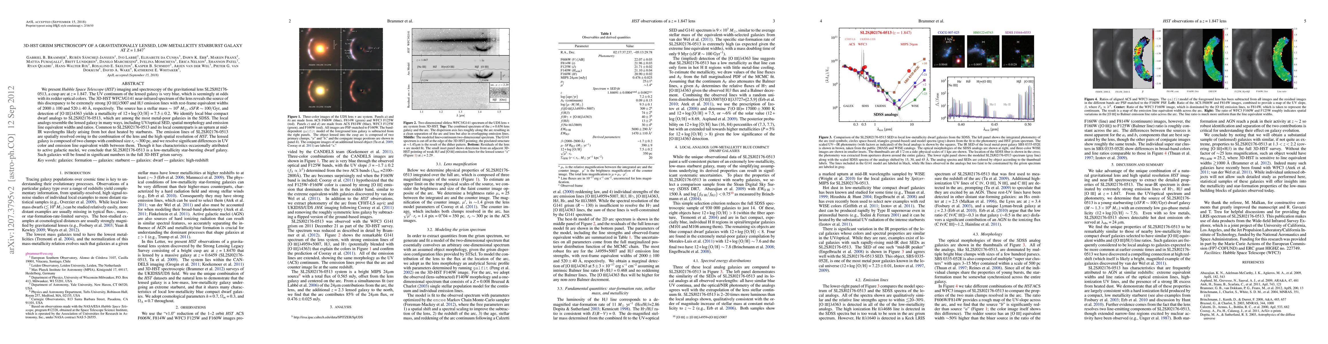This paper investigates a gravitationally lensed, low-metallicity starburst galaxy at z=1.847 using HST spectroscopy, revealing strong [OIII] and H-beta emission lines. The galaxy, composed of two clumps, exhibits characteristics similar to local blue compact dwarf galaxies, suggesting it is a low-metallicity star-bursting dwarf rather than an active galactic nucleus.