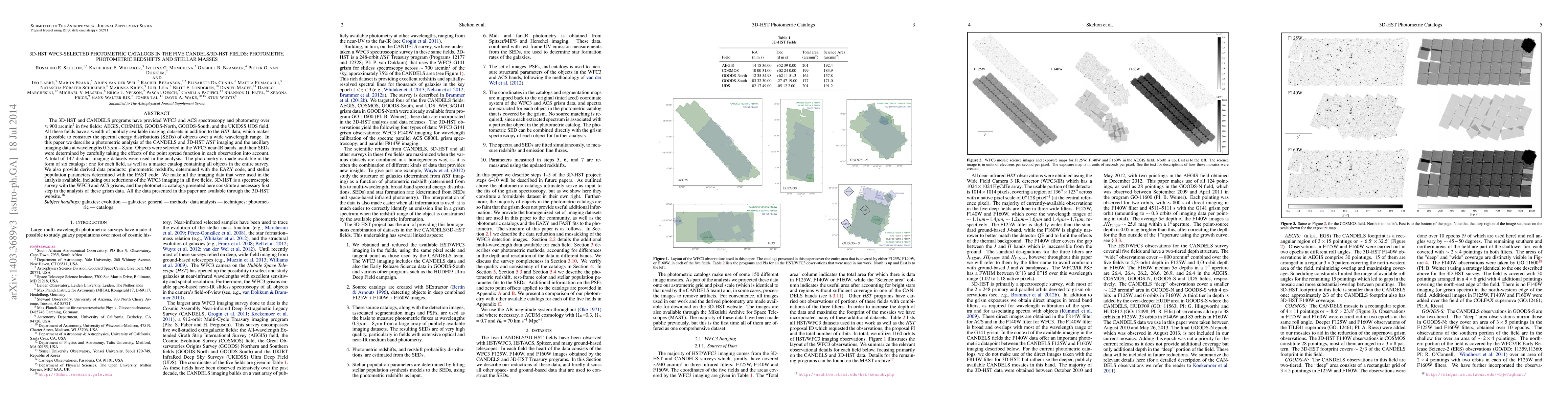 This paper presents a comprehensive photometric analysis of the CANDELS and 3D-HST HST imaging datasets across five fields, providing six photometric catalogs and derived data products including photometric redshifts and stellar masses. The analysis incorporates 147 imaging datasets to construct spectral energy distributions, making the data publicly available for further study.