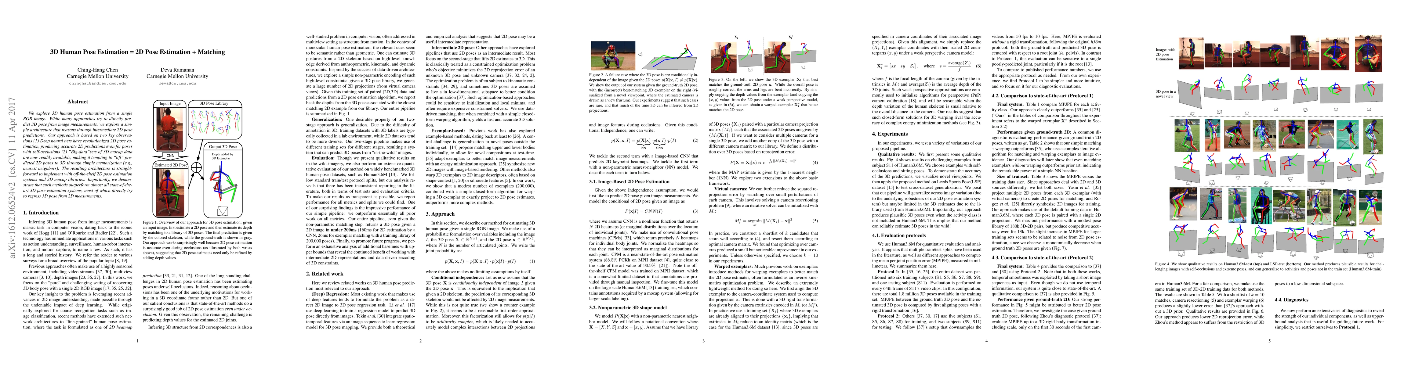 This paper proposes a novel 3D human pose estimation method that first predicts 2D poses using deep neural networks and then matches them to corresponding 3D poses from a 3D mocap dataset, outperforming direct 3D pose regression approaches.