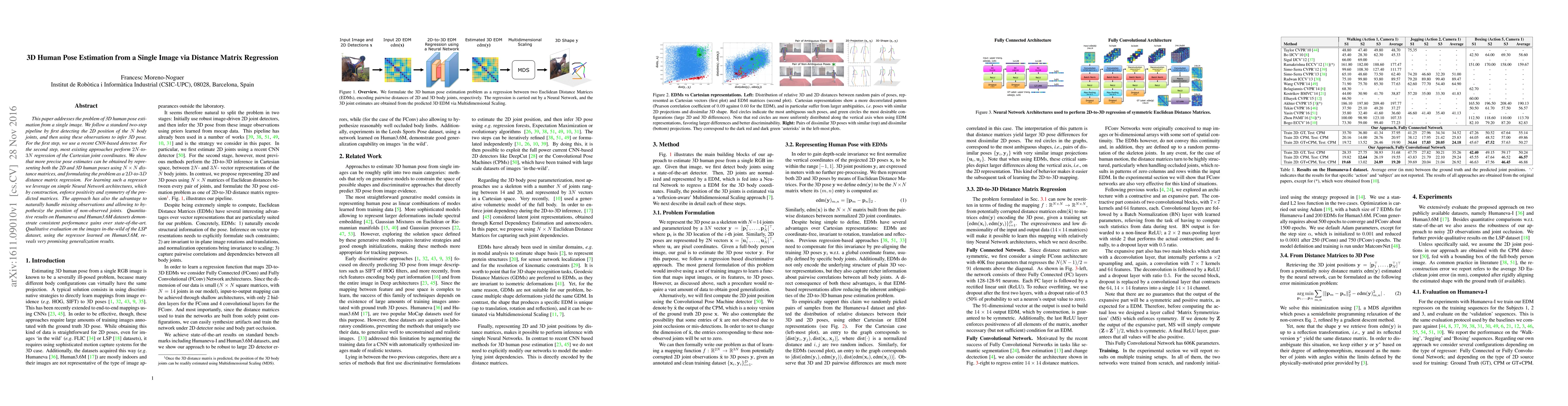 This paper proposes a novel method for 3D human pose estimation from a single image by using distance matrix regression to represent both 2D and 3D poses, achieving more precise pose estimates and handling missing joints effectively. The approach demonstrates superior performance on benchmark datasets and shows promising generalization to real-world images.