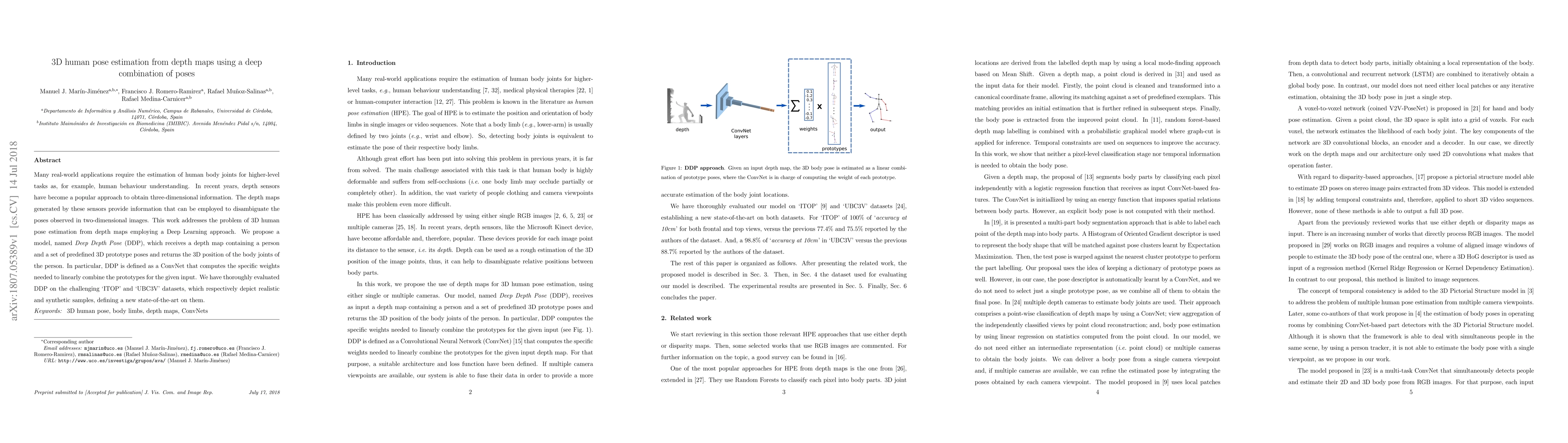 This paper proposes Deep Depth Pose (DDP), a ConvNet-based model for 3D human pose estimation from depth maps, which combines predefined 3D prototype poses to accurately determine body joint positions. The model achieves state-of-the-art results on both 'ITOP' and 'UBC3V' datasets, demonstrating its effectiveness for real-world applications.
