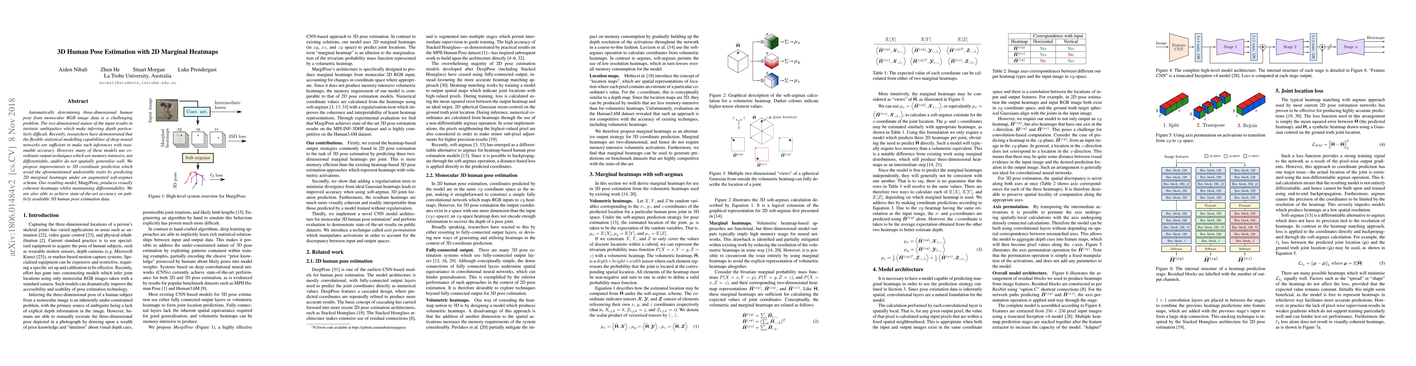 The paper proposes MargiPose, a method for 3D human pose estimation using 2D marginal heatmaps, which avoids memory-intensive and non-differentiable coordinate output techniques. The model achieves state-of-the-art accuracy while maintaining differentiability and producing coherent heatmaps.
