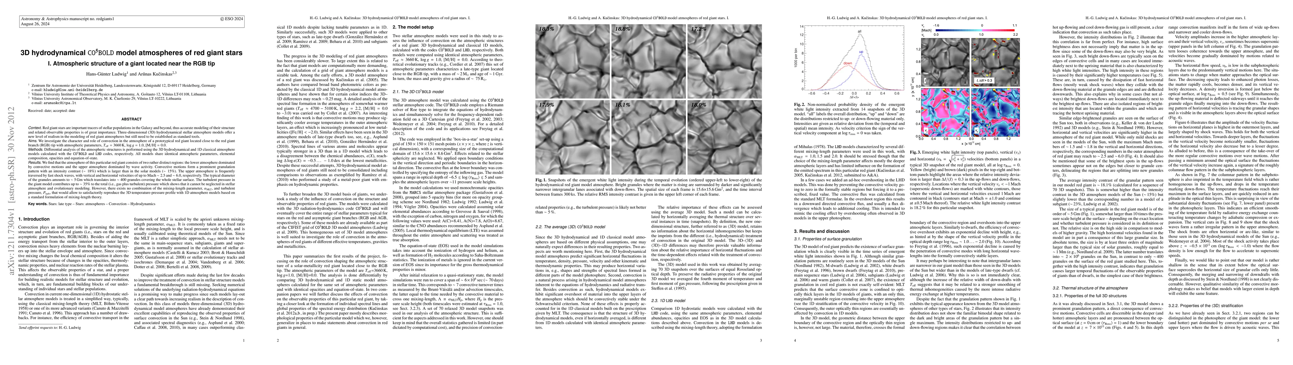 This study uses 3D hydrodynamical and 1D classical models to analyze the atmosphere of a red giant near the RGB tip, revealing a lower convective region and an upper wave-dominated region with shock waves and large granular structures. The turbulent pressure significantly impacts the total pressure, highlighting its importance in stellar atmosphere modeling.