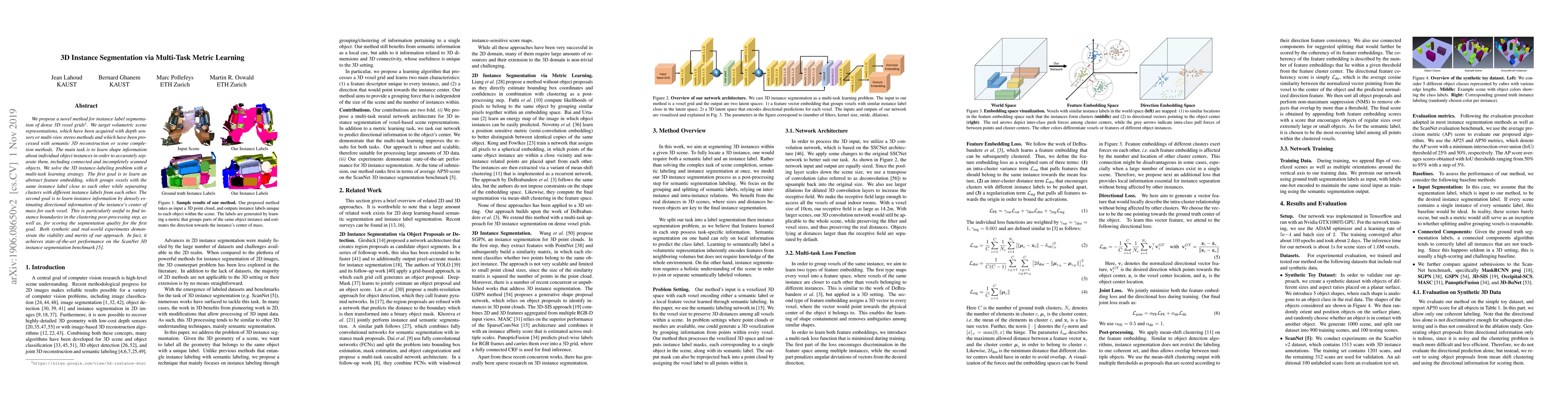 Researchers propose a new method for instance segmentation in 3D voxel grids using multi-task metric learning, achieving state-of-the-art performance on the ScanNet benchmark.