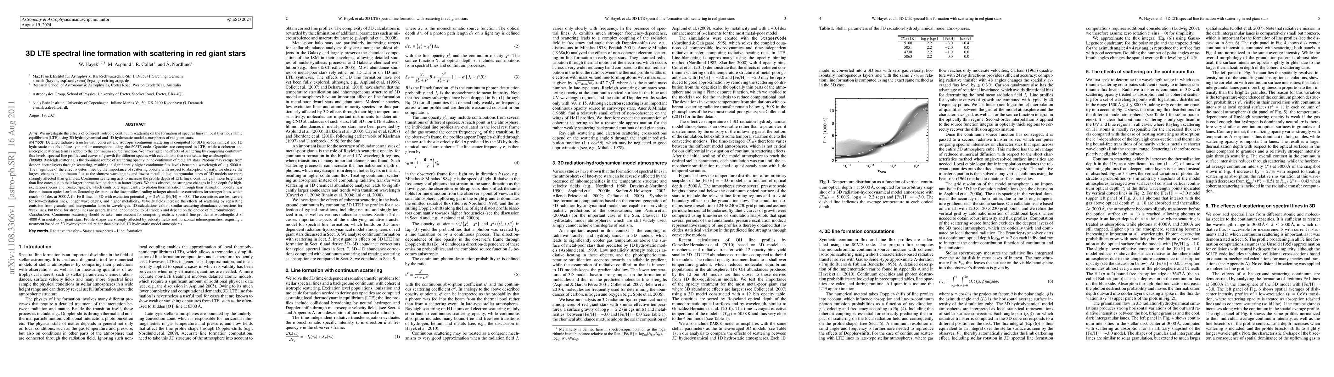 This study examines the impact of coherent isotropic continuum scattering on spectral line formation in red giant stars, comparing 3D hydrodynamical and 1D hydrostatic model atmospheres. Scattering increases continuum flux levels, especially in deeper layers, and modifies spectral line profiles, leading to significant abundance corrections for strong lines, particularly at shorter wavelengths and low metallicities.