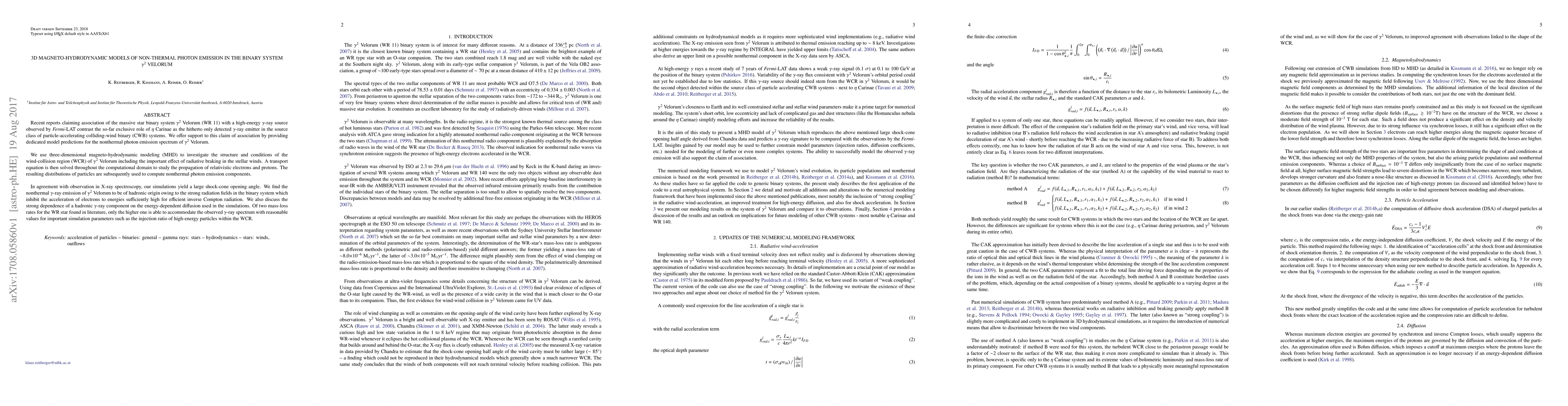 This research uses 3D magneto-hydrodynamic models to support the association of the binary system γ² Velorum with a high-energy γ-ray source. The study finds the γ-ray emission to be of hadronic origin due to strong radiation fields inhibiting electron acceleration. It also highlights the dependence of hadronic γ-ray component on particle diffusion and the importance of a higher mass-loss rate for the WR star to match the observed γ-ray spectrum.