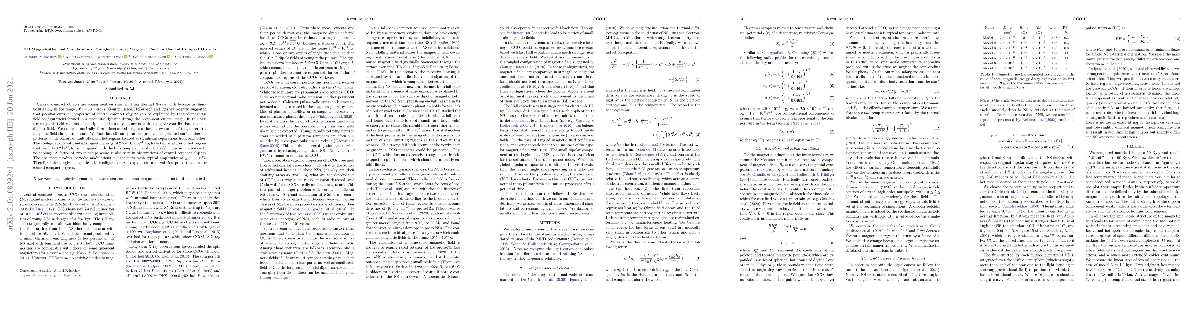 This paper investigates the three-dimensional magneto-thermal evolution of tangled crustal magnetic fields in neutron stars, finding that these configurations produce complex thermal patterns with multiple hot regions. The study suggests that such magnetic fields can explain the peculiar thermal emission properties observed in central compact objects.