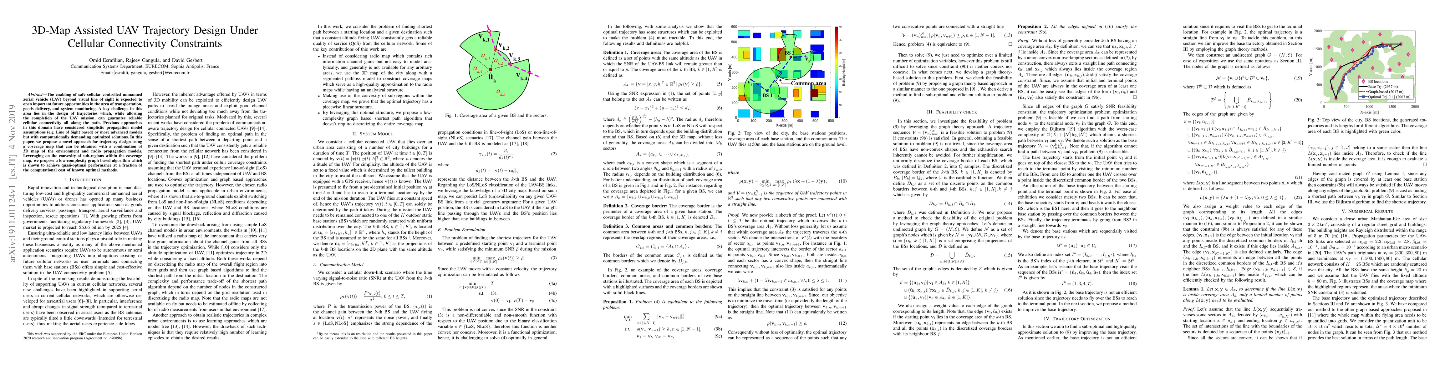 This paper proposes a novel low-complexity algorithm for designing UAV trajectories that ensures reliable cellular connectivity by leveraging a 3D map and radio propagation models. The approach uses a coverage map and convex sub-regions to achieve quasi-optimal performance with significantly reduced computational cost compared to existing methods.