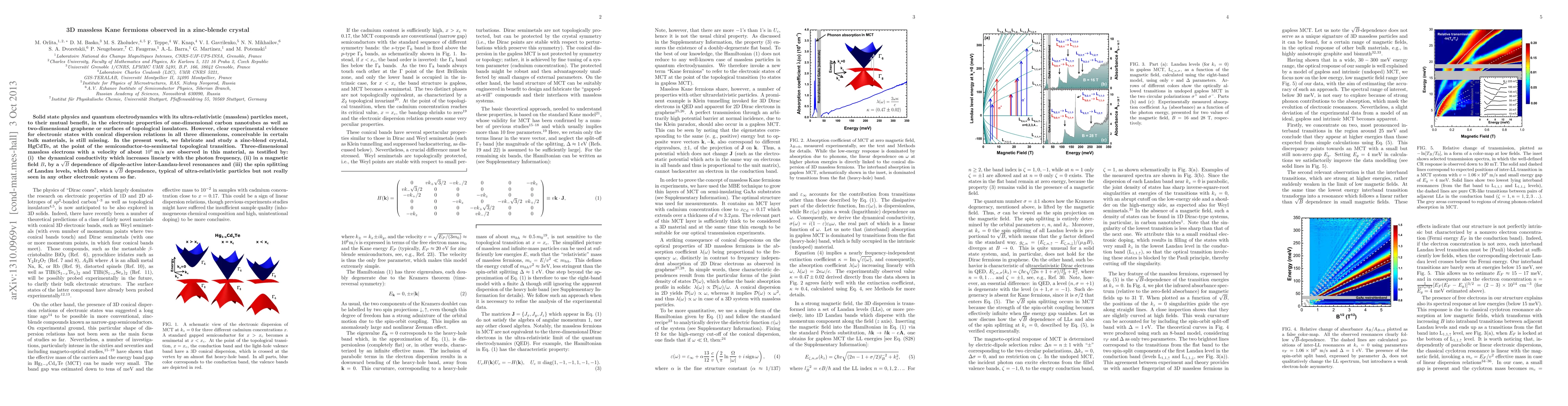 Solid state physics and quantum electrodynamics with its ultra-relativistic (massless) particles meet, to their mutual beneit, in the electronic properties of one-dimensional carbon nanotubes as well as two-dimensional graphene or surfaces of topological insulators. However, clear experimental evidence for electronic states with conical dispersion relations in all three dimensions, conceivable in certain bulk materials, is still missing. In the present work, we fabricate and study a zinc-blend crystal, HgCdTe, at the point of the semiconductor-to-semimetal topological transition. Three-dimensional massless electrons with a velocity of about 10$^6$ m/s are observed in this material, as testifed by: (i) the dynamical conductivity which increases linearly with the photon frequency, (ii) in a magnetic field $B$, by a $\sqrt{B}$ dependence of dipole-active inter-Landau-level resonances and (iii) the spin splitting of Landau levels, which follows a $\sqrt{B}$ dependence, typical of ultra-relativistic particles but not really seen in any other electronic system so far.