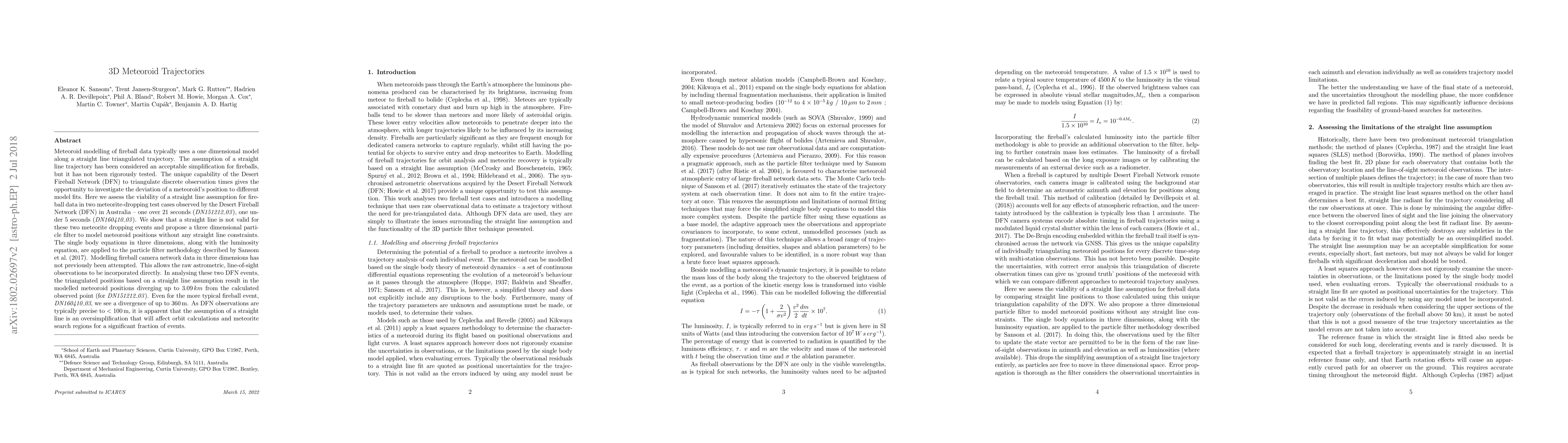 Meteoroid modelling of fireball data typically uses a one dimensional model along a straight line triangulated trajectory. The assumption of a straight line trajectory has been considered an acceptable simplification for fireballs, but it has not been rigorously tested. The unique capability of the Desert Fireball Network (DFN) to triangulate discrete observation times gives the opportunity to investigate the deviation of a meteoroid's position to different model fits. Here we assess the viability of a straight line assumption for fireball data in two meteorite-dropping test cases observed by the Desert Fireball Network (DFN) in Australia -- one over 21 seconds (\textit{DN151212\_03}), one under 5 seconds (\textit{DN160410\_03}). We show that a straight line is not valid for these two meteorite dropping events and propose a three dimensional particle filter to model meteoroid positions without any straight line constraints. The single body equations in three dimensions, along with the luminosity equation, are applied to the particle filter methodology described by \citet{Sansom2017}. Modelling fireball camera network data in three dimensions has not previously been attempted. This allows the raw astrometric, line-of-sight observations to be incorporated directly. In analysing these two DFN events, the triangulated positions based on a straight line assumption result in the modelled meteoroid positions diverging up to $3.09\, km$ from the calculated observed point (for \textit{DN151212\_03}). Even for the more typical fireball event, \textit{DN160410\_03}, we see a divergence of up to $360$\,m. As DFN observations are typically precise to $<100$\,m, it is apparent that the assumption of a straight line is an oversimplification that will affect orbit calculations and meteorite search regions for a significant fraction of events.
