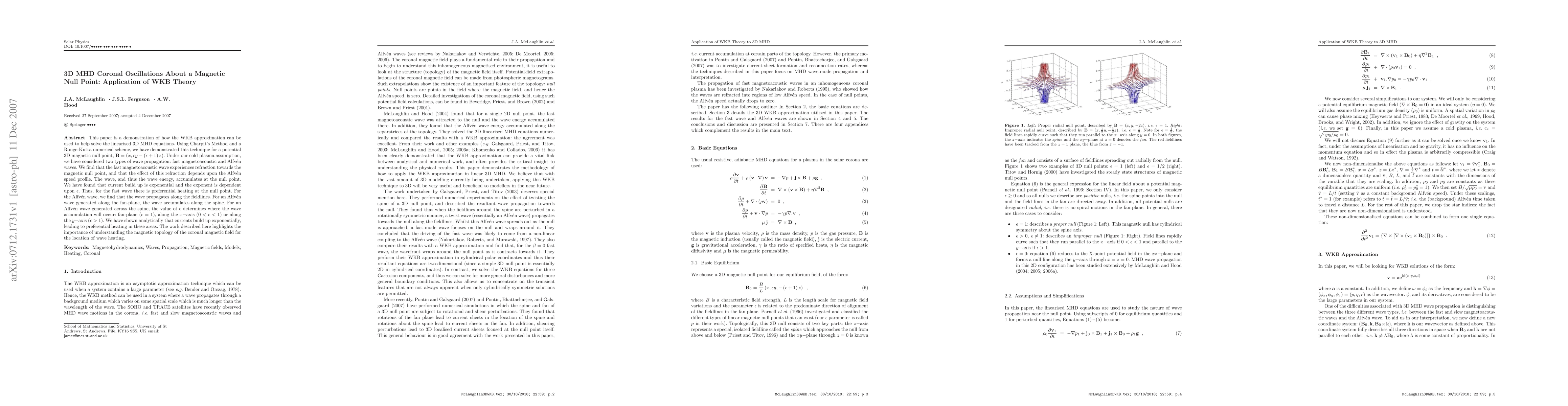 This paper applies the WKB approximation to solve linearized 3D MHD equations around a magnetic null point, revealing that fast magnetoacoustic waves refract towards the null point, leading to preferential heating, while Alfv\'en waves propagate along fieldlines with accumulation dependent on the Alfv\'en speed profile and the parameter $\epsilon$.