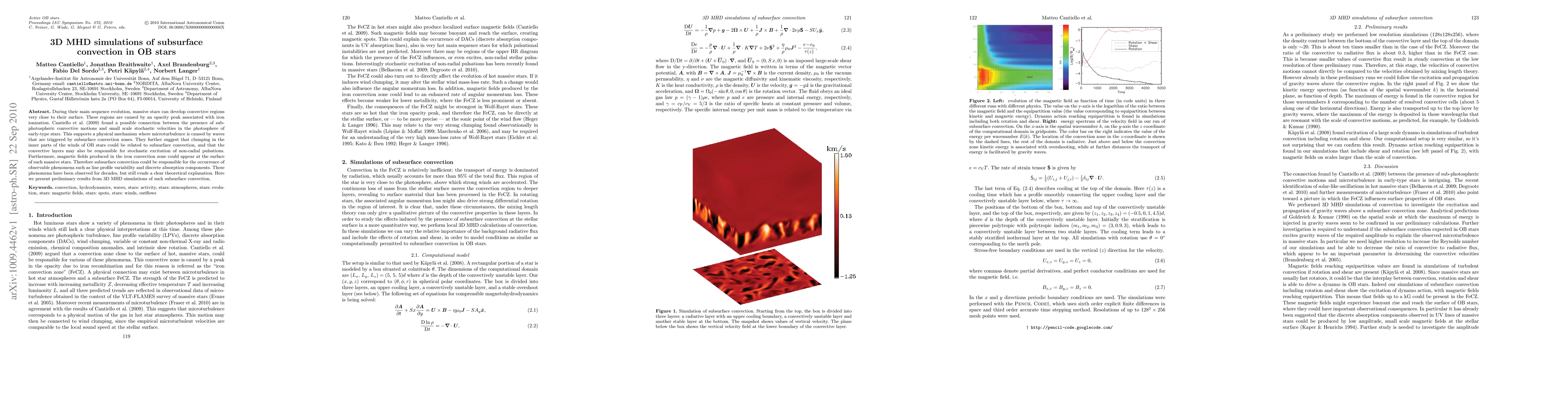 Researchers present preliminary results from 3D MHD simulations of subsurface convection in OB stars, exploring its potential impact on surface phenomena like line profile variability and discrete absorption components.
