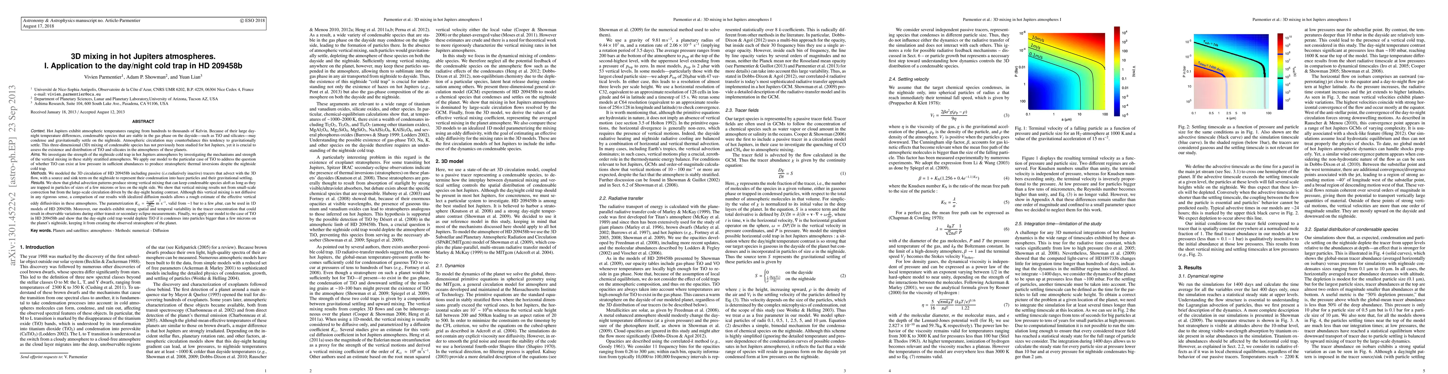 This paper investigates 3D mixing in hot Jupiter atmospheres, focusing on HD 209458b's day/night cold trap. It finds that global advection patterns maintain vertical mixing, preventing the gravitational settling of condensable species like TiO and silicates, provided they remain small enough.