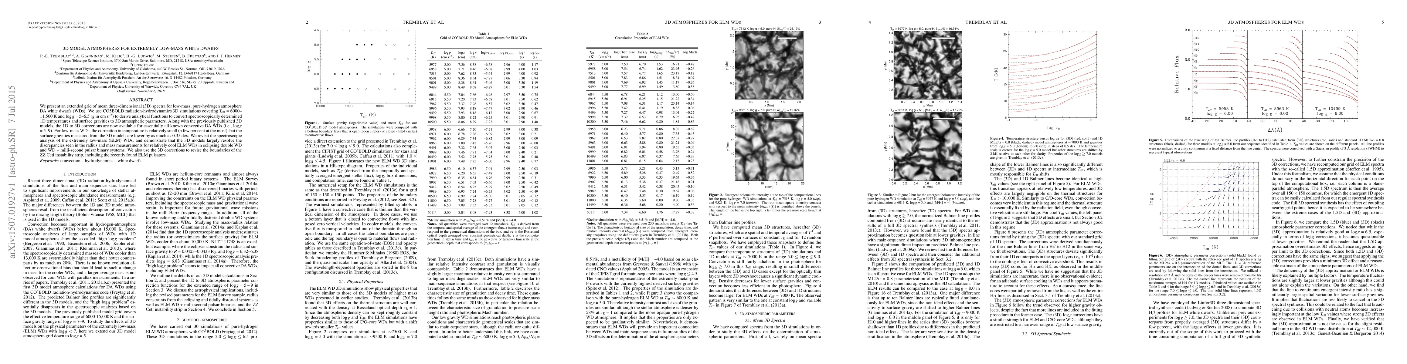 We present an extended grid of mean three-dimensional (3D) spectra for low-mass, pure-hydrogen atmosphere DA white dwarfs (WDs). We use CO5BOLD radiation-hydrodynamics 3D simulations covering Teff = 6000-11,500 K and logg = 5-6.5 (cgs units) to derive analytical functions to convert spectroscopically determined 1D temperatures and surface gravities to 3D atmospheric parameters. Along with the previously published 3D models, the 1D to 3D corrections are now available for essentially all known convective DA WDs (i.e., logg = 5-9). For low-mass WDs, the correction in temperature is relatively small (a few per cent at the most), but the surface gravities measured from the 3D models are lower by as much as 0.35 dex. We revisit the spectroscopic analysis of the extremely low-mass (ELM) WDs, and demonstrate that the 3D models largely resolve the discrepancies seen in the radius and mass measurements for relatively cool ELM WDs in eclipsing double WD and WD + milli-second pulsar binary systems. We also use the 3D corrections to revise the boundaries of the ZZ Ceti instability strip, including the recently found ELM pulsators.