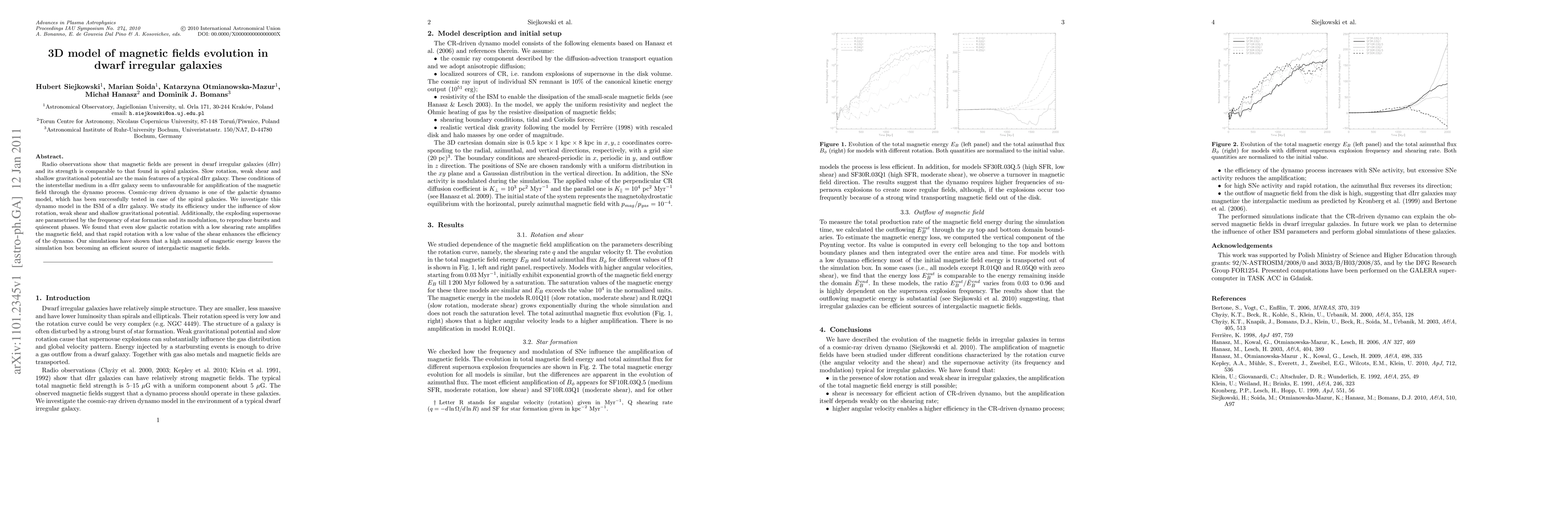 Researchers found that magnetic fields in dwarf irregular galaxies can be amplified through a cosmic-ray driven dynamo process, even with slow galactic rotation and weak shear.