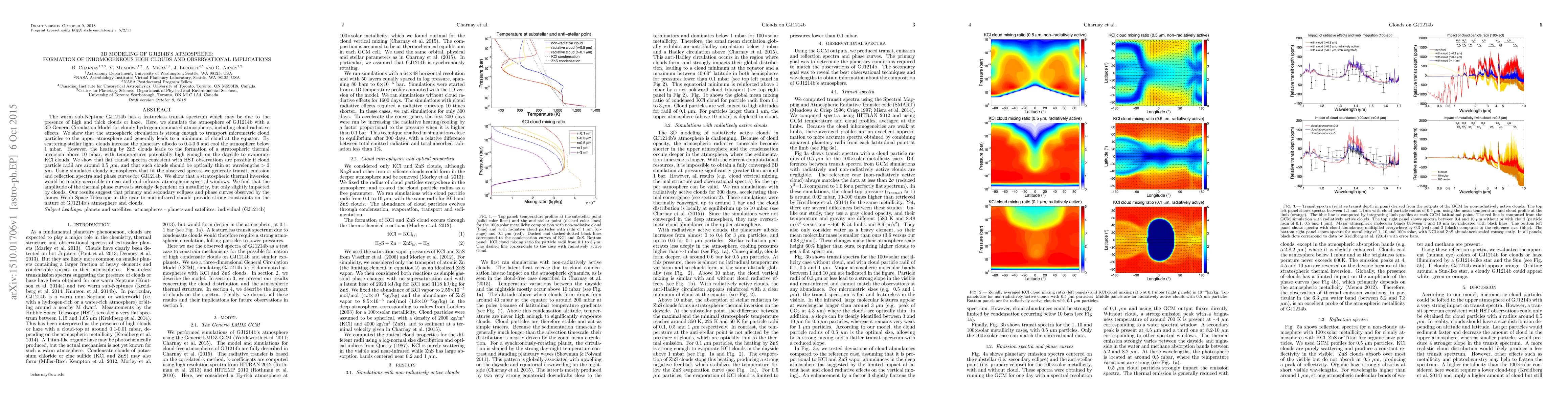 Simulations of GJ1214b's atmosphere suggest that thick clouds can explain its featureless transit spectrum, with cloud particle sizes influencing the planetary albedo and thermal phase curves.