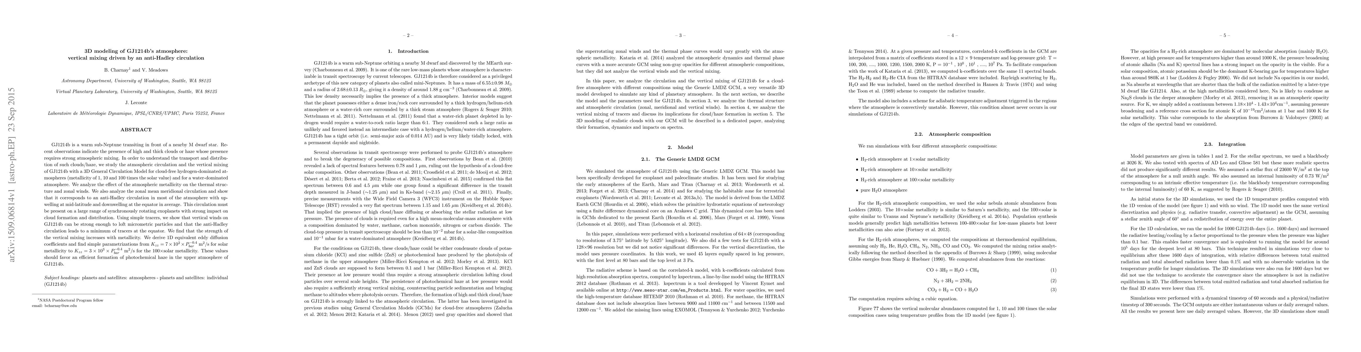 Researchers used a 3D model to study GJ1214b's atmosphere, finding that strong vertical mixing drives clouds and haze, with anti-Hadley circulation playing a key role in cloud formation and distribution.