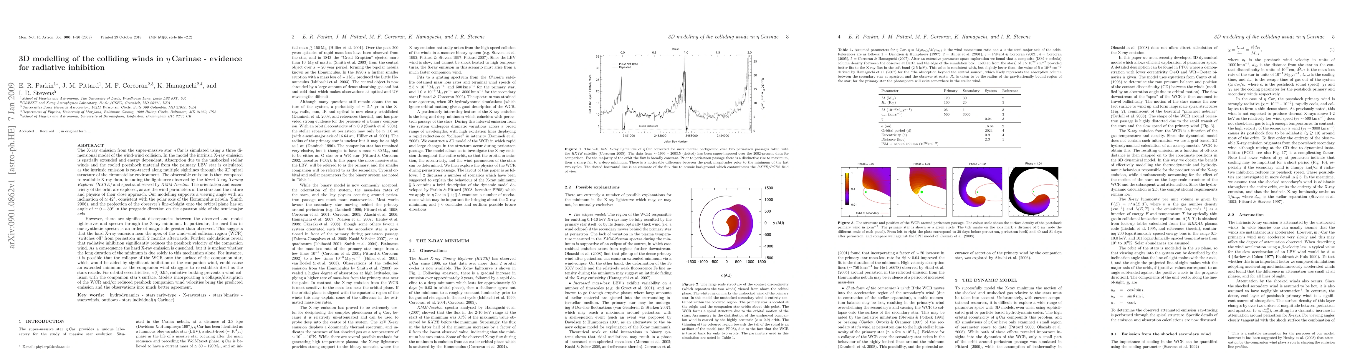 The X-ray emission from the super-massive star Eta Carinae is simulated using a three dimensional model of the wind-wind collision. In the model the intrinsic X-ray emission is spatially extended and energy dependent. Absorption due to the unshocked stellar winds and the cooled postshock material from the primary LBV star is calculated as the intrinsic emission is ray-traced along multiple sightlines through the 3D spiral structure of the circumstellar environment. The observable emission is then compared to available X-ray data, including the lightcurve observed by the Rossi X-ray Timing Explorer (RXTE) and spectra observed by XMM-Newton. The orientation and eccentricity of the orbit are explored, as are the wind parameters of the stars and the nature and physics of their close approach. Our modelling supports a viewing angle with an inclination of ~ 42 degrees, consistent with the polar axis of the Homunculus nebula (Smith 2006), and the projection of the observer's line-of-sight onto the orbital plane has an angle of ~ 0 - 30 degrees in the prograde direction on the apastron side of the semi-major axis. However, there are significant discrepancies between the observed and model lightcurves and spectra through the X-ray minimum. In particular, the hard flux in our synthetic spectra is an order of magnitude greater than observed. Further calculations reveal that radiative inhibition significantly reduces the preshock velocity of the companion wind. As a consequence the hard X-ray emission is quenched, but it is unclear whether the long duration of the minimum is due solely to this mechanism alone. Models incorporating a collapse/disruption of the WCR and/or reduced preshock companion wind velocities bring the predicted emission and the observations into much better agreement (abridged).