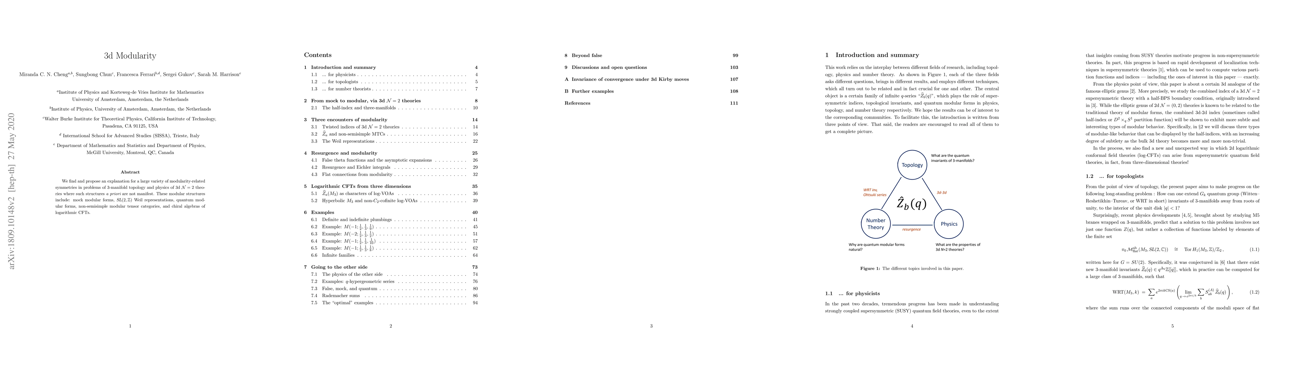 We find and propose an explanation for a large variety of modularity-related symmetries in problems of 3-manifold topology and physics of 3d $\mathcal{N}=2$ theories where such structures a priori are not manifest. These modular structures include: mock modular forms, $SL(2,\mathbb{Z})$ Weil representations, quantum modular forms, non-semisimple modular tensor categories, and chiral algebras of logarithmic CFTs.