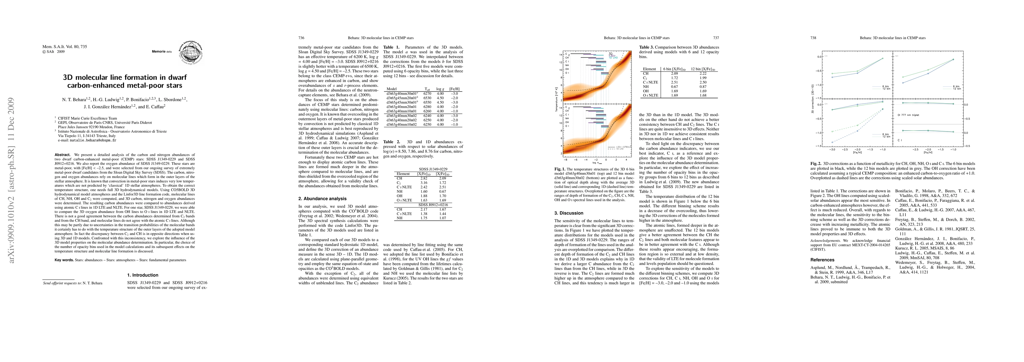 This paper analyzes carbon, nitrogen, and oxygen abundances in two metal-poor dwarf stars using 3D hydrodynamical models, revealing discrepancies between molecular and atomic line abundances. The study highlights the importance of 3D modeling for accurate temperature structures in metal-poor stars.