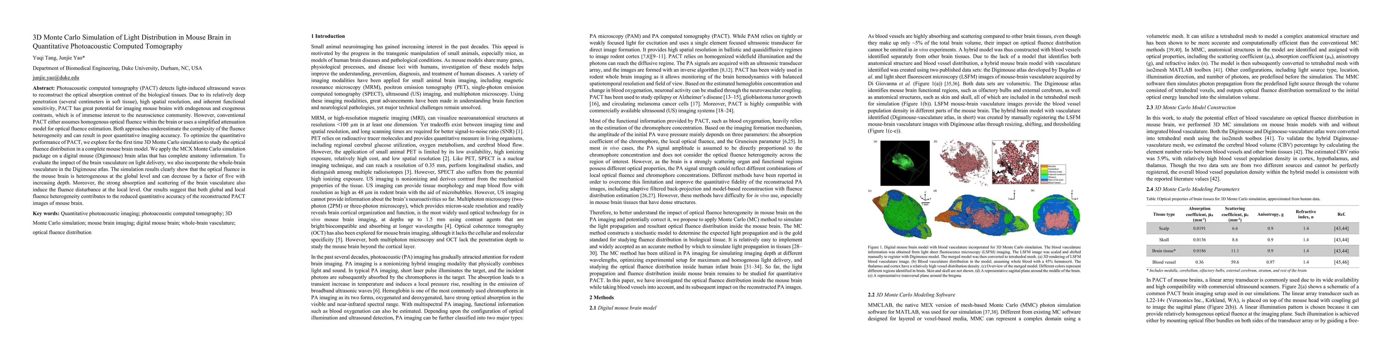 This study employs 3D Monte Carlo simulations to analyze the optical fluence distribution in a mouse brain model for quantitative photoacoustic computed tomography (PACT). The results reveal significant global and local fluence heterogeneity, highlighting the impact of brain vasculature on light delivery and suggesting that conventional PACT approaches may yield inaccurate quantitative imaging due to these complexities.